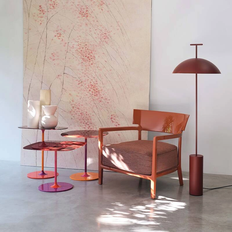 Les petites tables Thierry, dessinées par Piero Lissoni pour la marque Kartell, sont composées d'un plateau en verre et d'un pied central en métal coloré. Les finitions laquées ultra brillantes des tables Thierry, ainsi que les associations de couleurs utilisées leur donnent énormément de caractère. La beauté de ces petites tables réside dans leur apparence précieuse. La collection Thierry Kartell se décline en trois hauteurs avec des plateaux de formes différentes, ce qui permet d'associer plusieurs modèles dans des combinaisons originales.