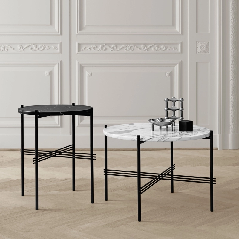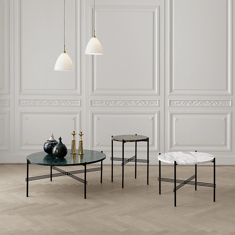 La collaboration entre le studio GamFratesi et la marque Gubi incarne la rencontre du design italien et l'inspiration danoise. L'approche minimaliste et l'artisanat traditionnel des pays scandinaves s'associent à un concept fort et émotionnel. GamFratesi joue sur les contrastes de matériaux et de formes avec un plateau en marbre ou en verre coloré reposant sur un piètement fin en métal noir. Graphique et élégante, la table basse TS est idéale seule ou en composition en jouant sur les tailles et les couleurs pour créer un ensemble original et personnel dans le salon.