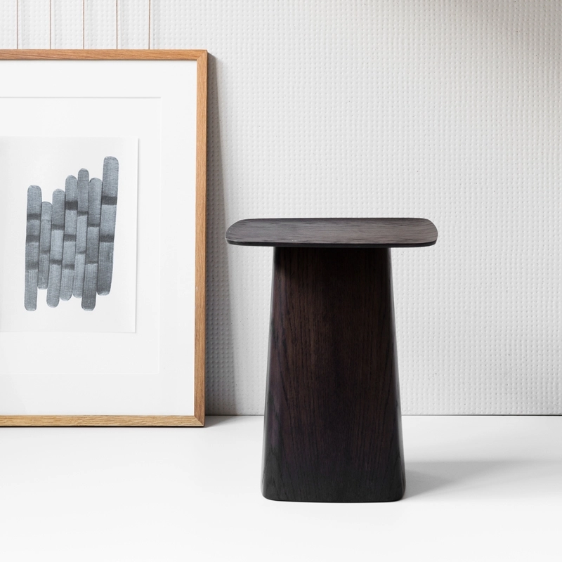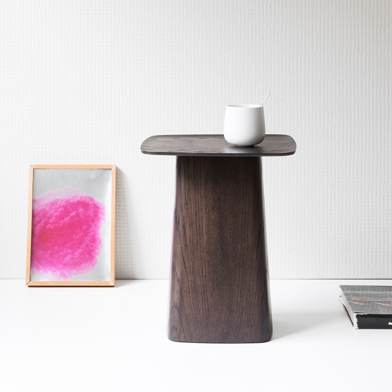 La famille des Side Table s'agrandie avec une nouvelle version en contreplaqué moulé : la Wooden Side Table. Ces petites tables d'appoint élégantes appartiennent à cette catégorie de meubles qui ne constitue pas la base du mobilier mais qui est toutefois indispensable en le complétant. Pouvant être facilement déplacés et ayant de nombreuses utilisations, ce sont de petits auxiliaires discrets assumant toutes sortes de précieux services. Grâce à leurs proportions équilibrées et le contraste formel séduisant entre les minces plateaux de table et les pieds volumineux en forme de socle, ces tables d'appoint s'intègrent aux environnements les plus divers. Produit par Vitra, Wooden Side Table se décline en trois tailles.