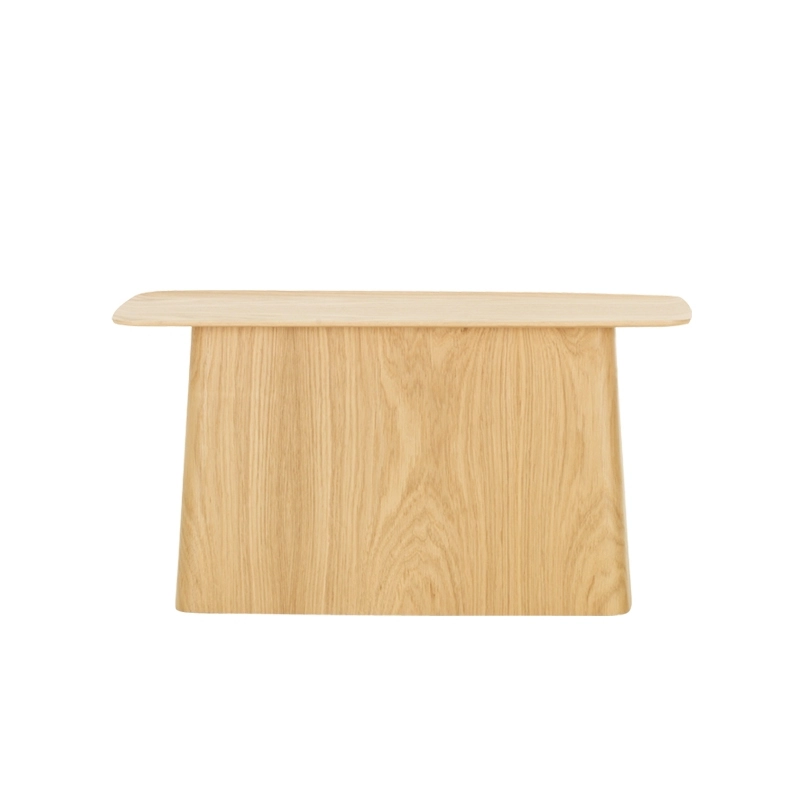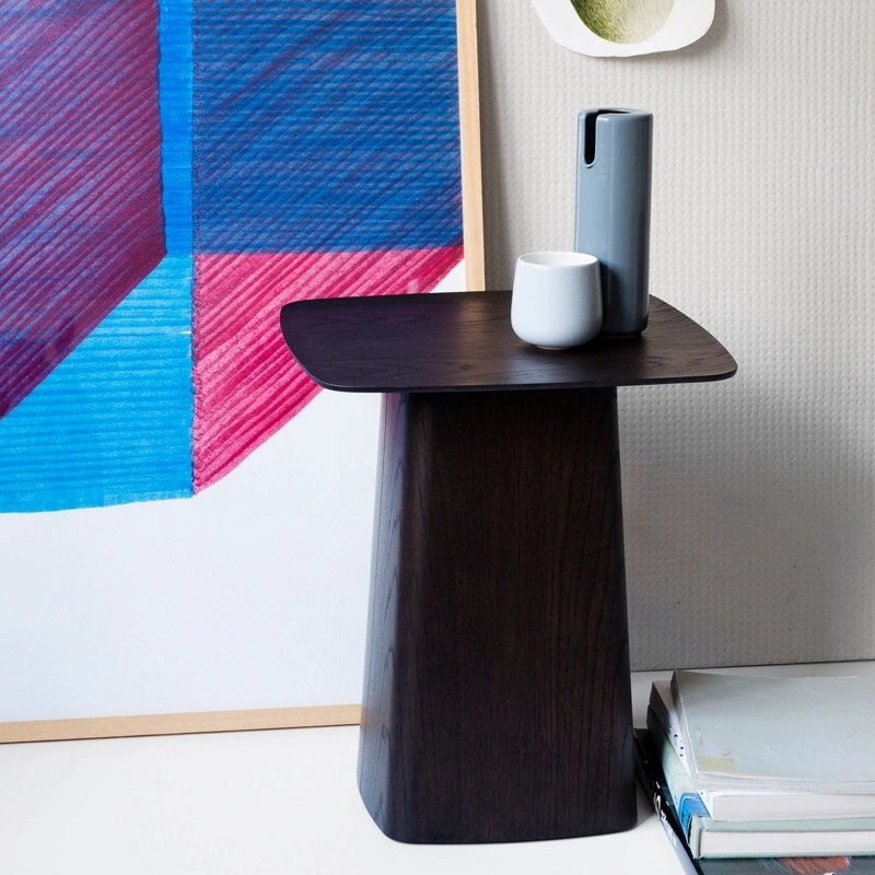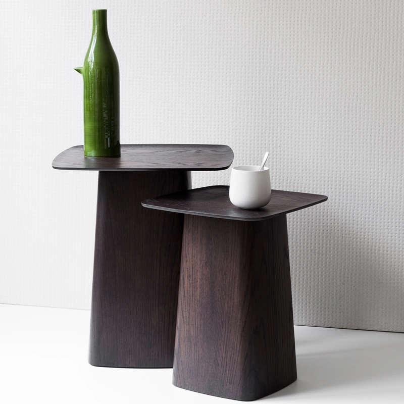 La famille des Side Table s'agrandie avec une nouvelle version en contreplaqué moulé : la Wooden Side Table. Ces petites tables d'appoint élégantes appartiennent à cette catégorie de meubles qui ne constitue pas la base du mobilier mais qui est toutefois indispensable en le complétant. Pouvant être facilement déplacés et ayant de nombreuses utilisations, ce sont de petits auxiliaires discrets assumant toutes sortes de précieux services. Grâce à leurs proportions équilibrées et le contraste formel séduisant entre les minces plateaux de table et les pieds volumineux en forme de socle, ces tables d'appoint s'intègrent aux environnements les plus divers. Produit par Vitra, Wooden Side Table se décline en trois tailles.