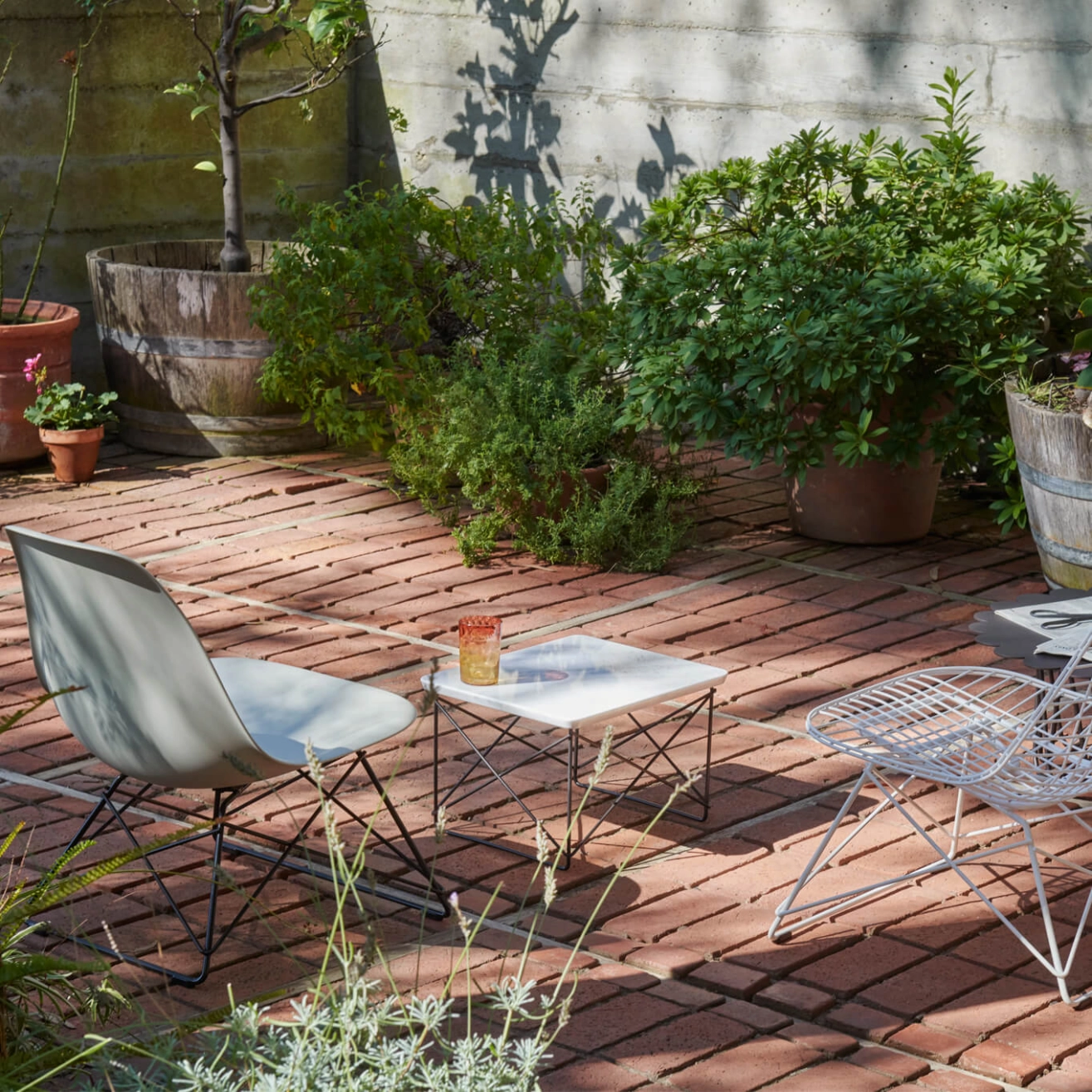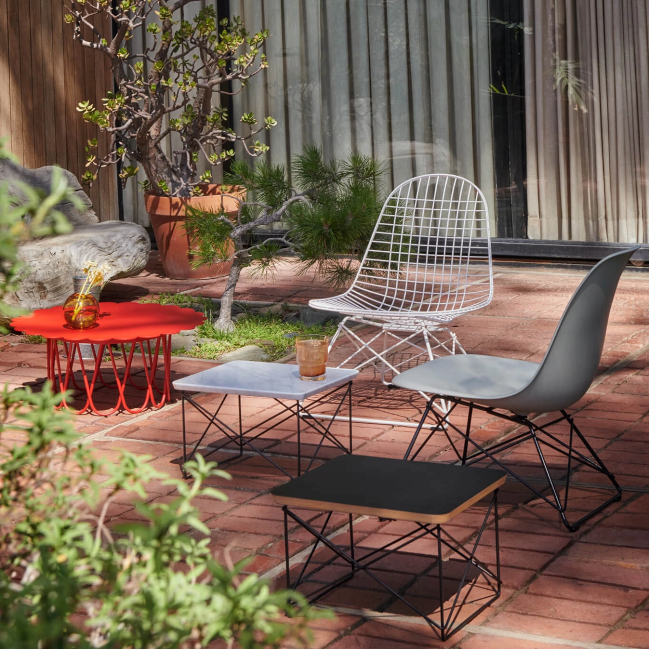 Charles Eames, décédé à 71 ans en 1978 à Saint-Louis, sa ville natale, est l'une des figures emblématiques du design du XXe siècle, ayant su orienter ce domaine vers la production de masse. Architecte de formation, il remporte en 1940, avec Eero Saarinen, le premier prix du concours de design organique du MoMA de New York, ce qui lui permet d'enseigner le design industriel à la Cranbrook Academy. C'est là qu'il rencontre Ray, qui y étudie la peinture. Charles et Ray Eames se marient en 1941 et s'installent à Los Angeles, où ils commencent à expérimenter ensemble les techniques de moulage tridimensionnel du contreplaqué, dans le but de créer des chaises à la fois confortables et abordables.  Leur développement d'attelles et de civières en contreplaqué pour l’armée américaine les pousse à perfectionner cette technologie, qui sera utilisée pour la production de mobilier par Herman Miller (en 1946) puis par Vitra (en 1957). En 1948, Charles et Ray Eames participent au concours « Low-Cost Furniture » du MoMA, et en 1949, ils construisent la maison Eames, qui devient leur résidence privée. Leur célèbre fauteuil Eames Lounge Chair a été commercialisé à plus de 6 millions d'exemplaires depuis sa création en 1956, tandis que l'Aluminium Chair, qui a donné naissance à l'Aluminium Group en 1958, ainsi que le fauteuil pivotant Soft Pad avec son repose-pieds (1969), continuent de séduire les amateurs de design et sont même garantis pendant 30 ans. En plus de leur travail dans le mobilier et l'architecture, Charles et Ray Eames explorent régulièrement d'autres domaines comme le graphisme, la photographie, la réalisation de films et d'expositions. Pour Vitra, la collaboration avec Charles et Ray Eames est d'une importance fondamentale. C'est avec la production de leurs créations en 1957 que l'histoire de Vitra en tant que fabricant de mobilier commence. Toutefois, l'impact du couple ne se limite pas seulement à leurs produits ; leur vision du design continue de façonner les valeurs et l'orientation de l'entreprise, même aujourd'hui. La philosophie de conception de l'ensemble de la collection Eames influence toujours les valeurs, l'orientation et les objectifs de Vitra. Cela se manifeste particulièrement dans la question récurrente que se pose l'entreprise lors de décisions importantes en matière de design : « Que diraient Charles et Ray ? » Au cours de leur vie commune, le couple a donné des réponses lors de leurs voyages en Europe et de leurs retours en Californie. De nombreux éléments rapportés de voyage, comme le célèbre Eames House Bird, peuvent être retrouvés dans la maison Eames.