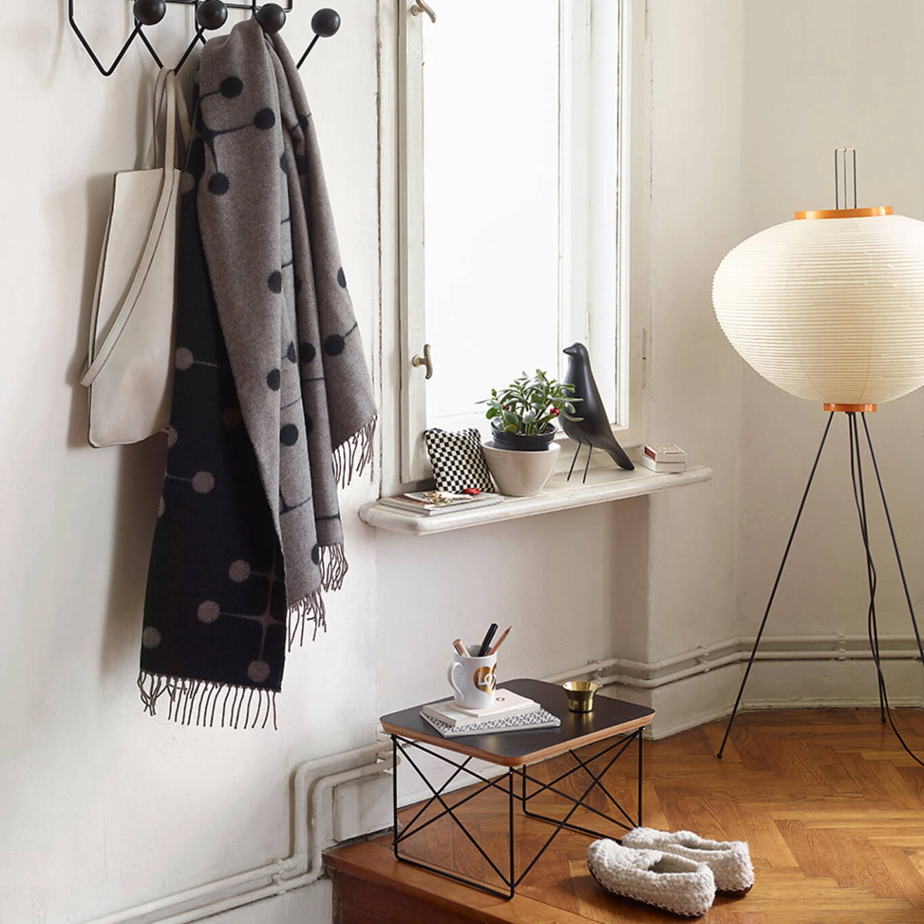 La LTR, Low Table Rod Base, a été conçue en 1950 par le couple de designers Charles et Ray Eames comme petite table basse d'appoint permettant de nombreuses variations et utilisée sous différentes formes dans leur propre maison, la Eames House. Éditées par Vitra, on y trouve aujourd'hui encore un grand nombre de ces tables, disposées séparément ou regroupées, décorées d'objets issus de la collection Eames ou faisant simplement office de tablette près d'un fauteuil et d'un canapé. La table basse LTR fait aujourd'hui partie de la collection du Vitra Design Museum. Le plateau en châtaignier est disponible avec une base complexe comportant deux tiges en acier galvanisé en U, avec des traverses qui apportent la stabilité nécessaire pour assurer leur fonctionnalité. La base est proposée en finition blanche ou inox, selon le rendu souhaité. Une table basse Vitra qui s'adapte aisément à votre environnement : en bout de canapé, en table de chevet…