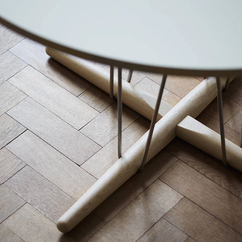 Dessinée par EOOS pour Carl Hansen & Søn, Embrace est une table fonctionnelle qui allie bois et acier pour créer une pièce aérienne et distinctive.