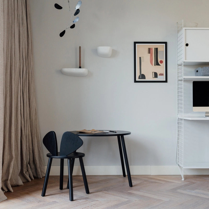 Conçu par la marque danoise Nofred, Mouse Shool Set est un ensemble chaise et table conçu pour les enfants de 6 à 10 ans. Ce set est idéal pour créer un espace à la hauteur de votre enfant, pour les devoirs, le dessin ou les jeux. La chaise et la table Mouse se déplacent facilement dans toutes la maison permettant aux enfants d’être proches des parents. Avec ses formes ludiques, Mouse séduira les enfants tout en plaisant aux parents, grâce à une réalisation et un design de qualité. Cet ensemble de meubles durables et mobiles combine parfaitement fonction et esthétique.