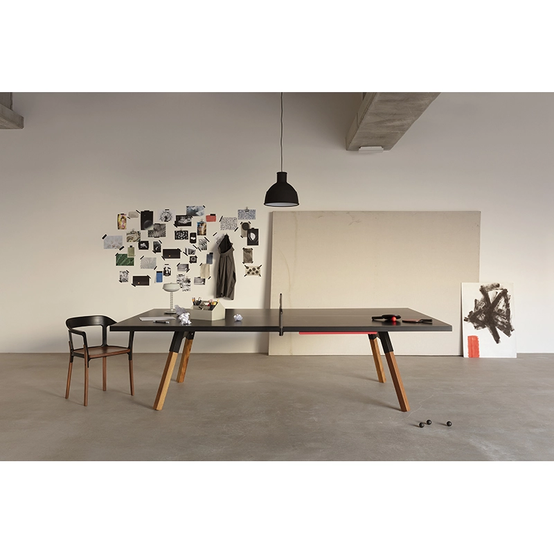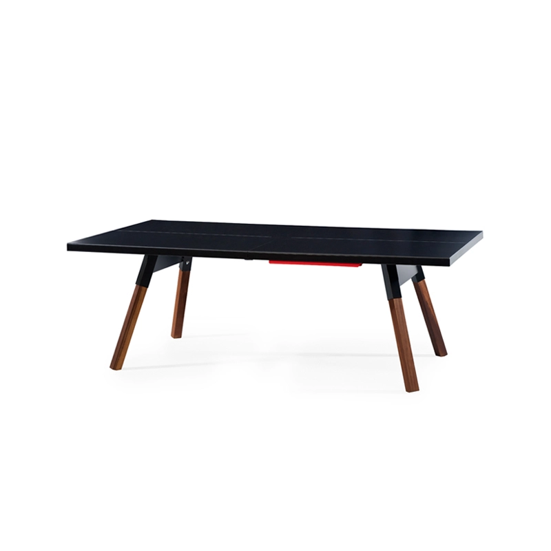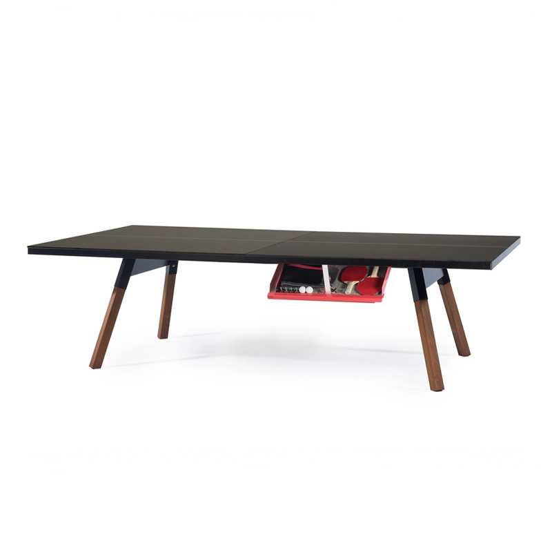 La table convertible You and Me fait partie de la collection ludique de RS Barcelona, une marque de produits vivants et intenses. C’est à la fois une table de ping-pong comme vous n’en avez jamais vue et une table de repas dotée de lignes minimalistes et élégantes qui s’intègre aussi bien à l’intérieur qu’à l’extérieur. Lorsqu’elle n’est pas utilisée pour jouer, le filet, les raquettes et les balles peuvent être rangés dans un tiroir latéral discret. La table You and Me est fabriquée à partir de matériaux de qualité supérieure. Le plateau en HPL blanc ou noir (le même matériau qui est utilisé pour les tables de ping-pong classiques) est idéal pour une utilisation en extérieur. Pour la version en HPL noir, il est conseillé protéger le plateau lorsqu'il n'est pas utilisé, pour éviter la décoloration par le soleil, s'il est utilisé à l'extérieur.