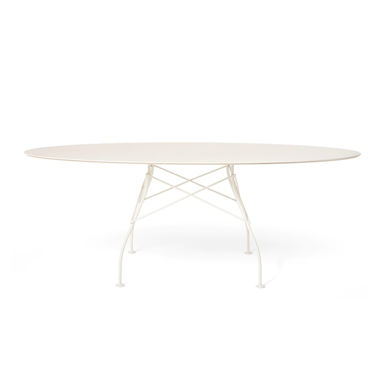 Glossy Outdoor se décline en version ronde ou ovale dans plusieurs couleurs afin de s'accorder parfaitement à votre espace extérieur.