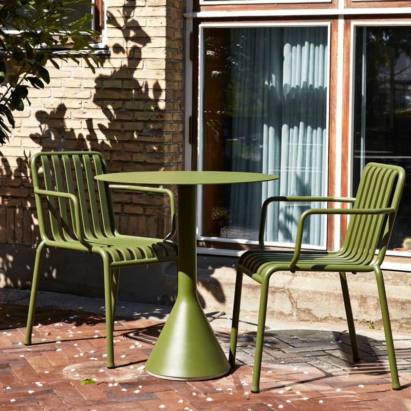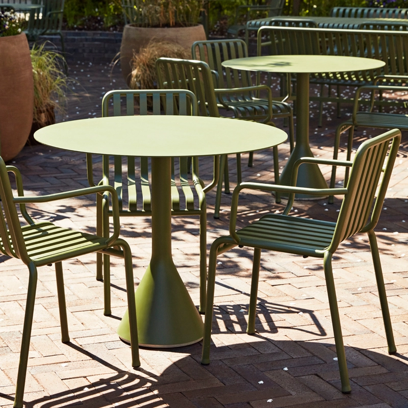 table Palissade Cone est dotée d'un revêtement en poudré qui permet une utilisation en intérieur comme en extérieur.