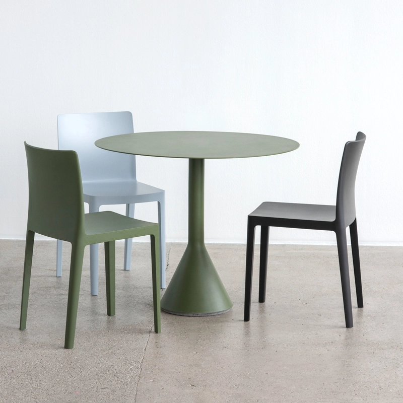 table Palissade Cone est ainsi robuste et élégante, sans être encombrante. Disponible en différentes tailles et couleurs, elle dispose d'une base en béton pour une parfaite stabilité. La
