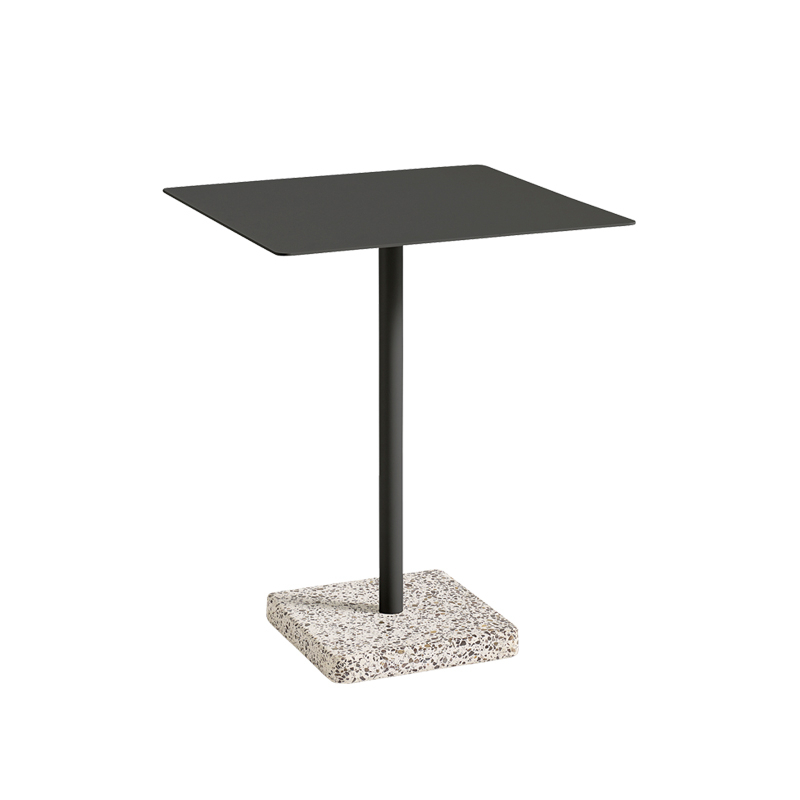 Créée par le designer suédois Daniel Enoksson pour la marque Hay, Terrazzo est une collection de tables conçue pour l’extérieur comme pour l’intérieur. Terrazzo se décline avec un plateau rond ou carré, réalisé en acier électro-zingué avec une finition époxy, pour une meilleure résistance. La base est en terrazzo poli, un matériau choisi pour son aspect durable, mais aussi pour sa finition unique et distincte qui crée un contraste avec la simplicité du plateau. Conçue pour être utilisée dans un jardin, une terrasse ou un balcon, la table Terrazzo Hay s’intègre aussi facilement à l’intérieur. Elle convient aussi bien à une utilisation résidentielle qu’à un espace collectif.