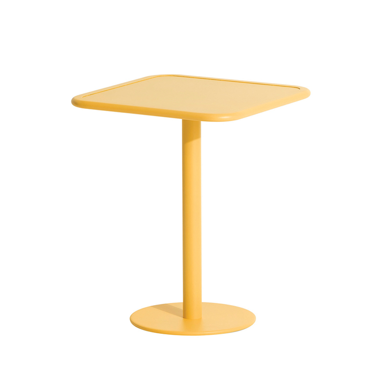 Avec Week-End, la marque française Petite Friture pose son regard singulier sur l’été et propose avec le studio Brichet-Ziegler une approche graphique et contemporaine du mobilier de jardin. La collection Week-End est une gamme de mobilier outdoor complète. Les couleurs précises sélectionnées pour cette collection marquent seules ou en combinaison les lignes d’horizon d’un balcon, d’une terrasse ou d’un jardin. Cette table est disponible en plusieurs couleurs comme le noir, jaune, vert jade … La mise en couleurs de la collection Week-end, de Petite Friture, en peinture poudre époxy anti-UV grainée garantit un maintien impeccable des teintes au cours du temps. La table design proposée par Petite Friture, a été conçue avec l’obsession de tirer le meilleur parti des matériaux et des techniques de réalisation à la disposition des designers. Réalisée en aluminium, matériau sélectionné pour sa légèreté et sa résistance aux intempéries, la collection Week-End allie confort esthétique et sens pratique.