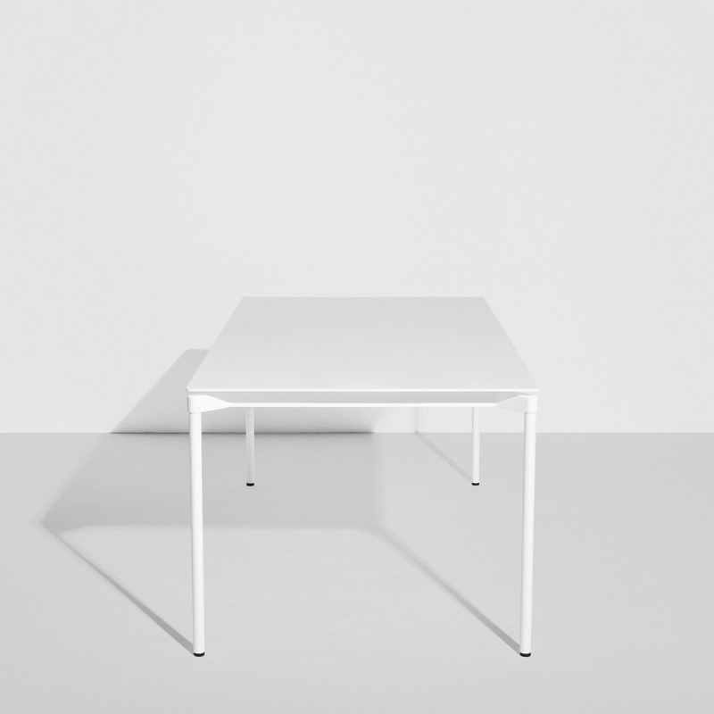 Editée par Petite Friture, Fromme est une collection de meubles en métal conçus pour l’extérieur, se distinguant par ses lignes pures et son caractère unique. Pouvant accueillir jusqu’à 6 personnes, la table rectangulaire Fromme a été pensée pour une utilisation autant intérieure qu’extérieure. Elle peut s’agrémenter des chaises et tabourets de la même collection. La table rectangulaire Fromme est en aluminium, un matériau durable. Il est recyclable à 100% sans dégradation de ses propriétés. Son recyclage ne nécessite que peu d’énergie. Par ailleurs, sa filière de recyclage est l’une des mieux organisées. La fabrication de la collection, a nécessité la création de moules spéciaux. Les pieds de la table sont des tubes extrudés qui assurent légèreté et solidité à la table Fromme.