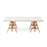 tréteaux hêtre, plateau particules de bois, plaqué plastique