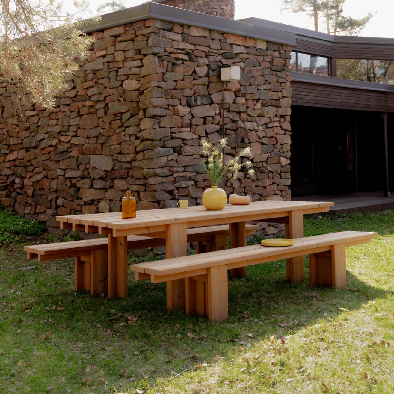 Conçue par Henrik Tjaerby pour Vaarnii, la table Osa incarne une vision pragmatique et élégante du mobilier d’extérieur. Son design repose sur une construction modulaire intelligente, fondée sur un profil en T standardisé et un assemblage réduit au strict nécessaire. Cette approche permet de créer des tables aux dimensions généreuses tout en assurant une stabilité irréprochable. Osa est fabriquée en pin finlandais traité thermiquement, cette essence de bois innovante se distingue par sa légèreté, sa robustesse et sa résistance naturelle aux intempéries. Parfaite pour affronter les conditions extérieures les plus exigeantes, la table Osa conserve son intégrité face au vent, à l’humidité et aux variations climatiques. Avec ses lignes nettes et son esthétique volontairement fonctionnelle, la table Osa de Vaarnii reflète une alliance réussie entre durabilité, minimalisme et savoir-faire technique. Elle forme, avec le banc Osa, un duo harmonieux pensé pour les espaces extérieurs contemporains.