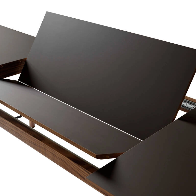 Editée par And Tradition, Patch est une table extensible qui combine formes minimalistes et design convivial. Déterminé à créer une table qui convienne aux besoins des familles modernes, le designer Hee Welling a fait plusieurs prototypes avant d’être satisfait. Le résultat est Patch, une table de repas extensible, qui utilise une technique de rallonge papillon pour permettre à plus de personnes de s'asseoir. Sa base en bois est surmontée d'un plateau en stratifié lisse. Les pieds de la table Patch And Tradition aux formes douces et les coins arrondis du plateau ajoutent de subtils détails de conception, tout comme les pièces de métal sur chaque pied qui les maintiennent solidement ensemble. Aussi esthétique que fonctionnelle, la table Patch est disponible en deux tailles : 180 x 90 cm ou 240 x 100 cm, toutes deux extensibles de 100 cm.