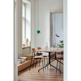 Dessinée par Anderssen & Voll pour And Tradition, Pavilion est une collection de meubles contemporains à l’esthétique légère et poétique. La table Pavilion est disponible en trois tailles. La plus grande, conçue pour 6 à 8 personnes est idéale dans une salle de réunion ou dans un espace repas, tandis que la plus petite, pour 4 personnes, s’intègre parfaitement dans la maison. La table Pavilion peut être coordonnée au bureau de la même collection, pour une expérience de design complète. Le plateau se décline en trois versions : chêne laqué noir, chêne laqué naturel et noyer laqué naturel. Les pieds sont quant à eux disponibles en noir mat ou chrome.