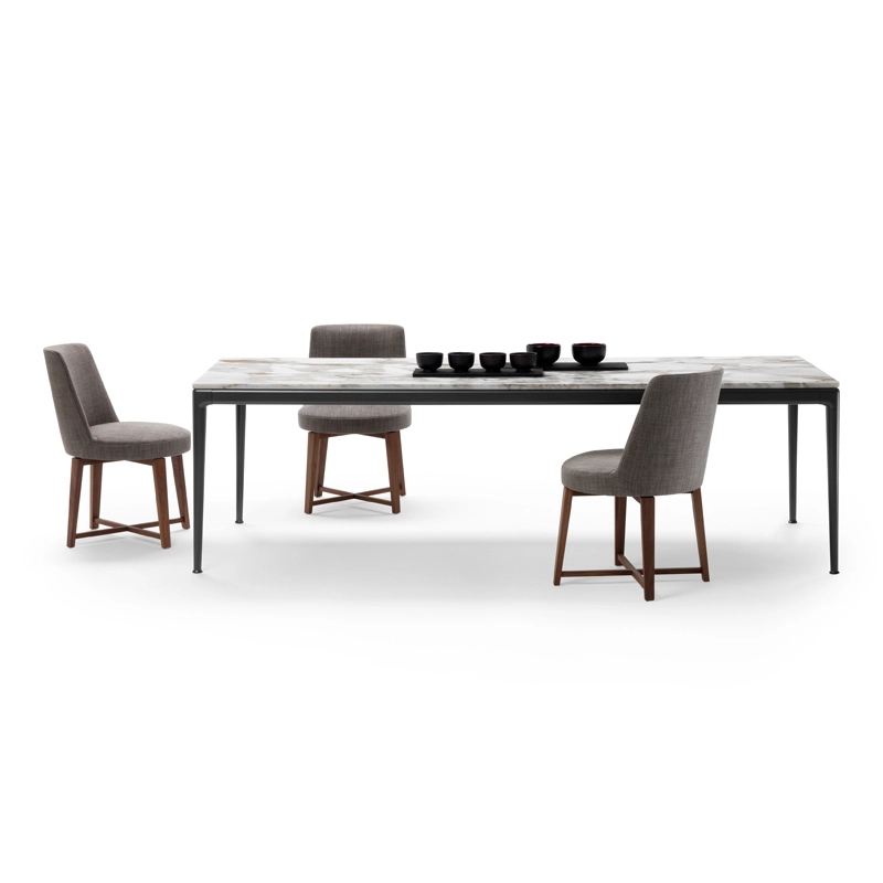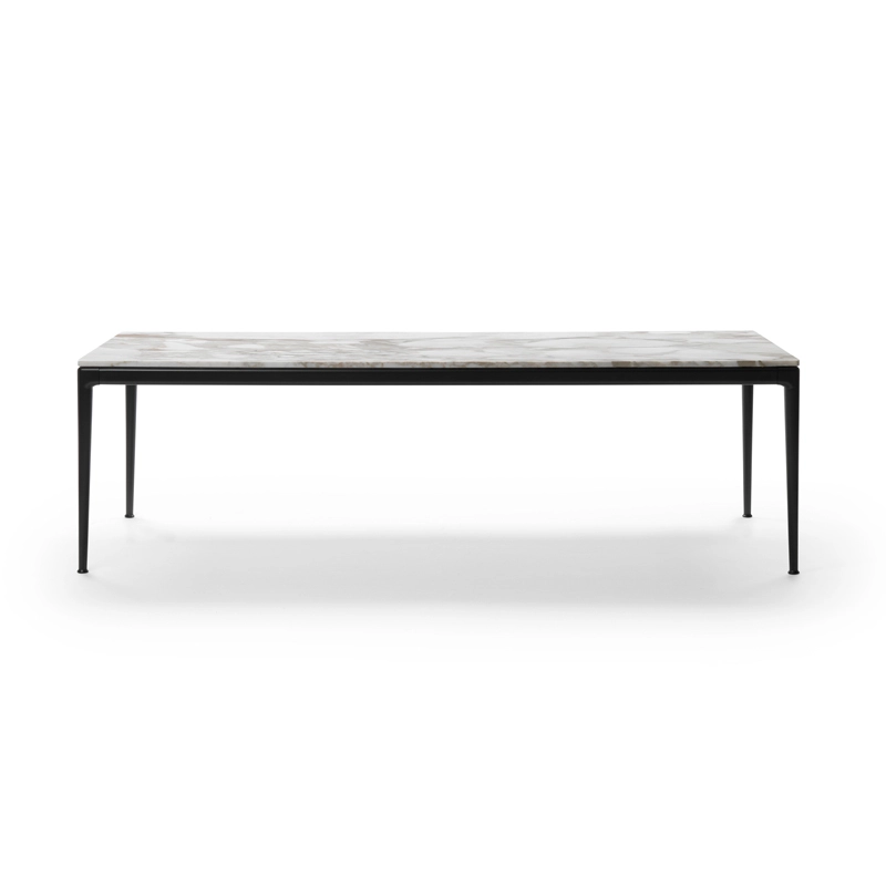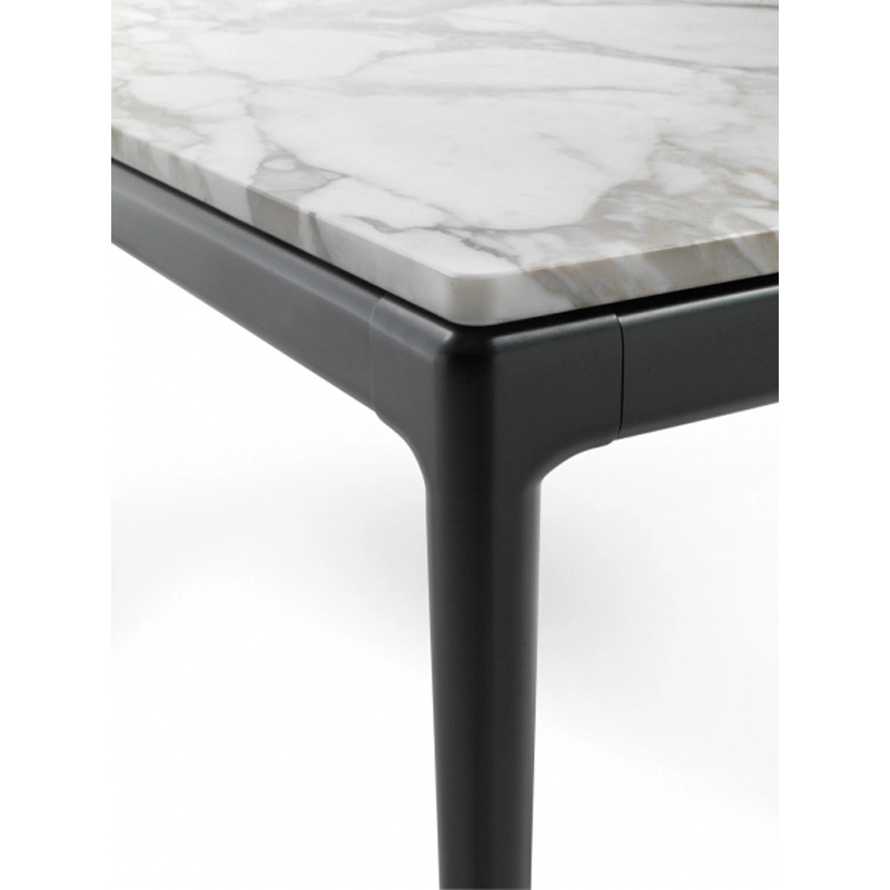 Pico apportent une touche de dynamisme et une remarquable légèreté visuelle. Ils sont fabriqués en fonte d'aluminium et disponibles en une variété d'élégantes finitions, tandis que le plateau aux bords arrondis existe en différents types de marbre ou en bois plaqué noyer canaletto ou frêne en de nombreuses finitions. La table et les tables basses