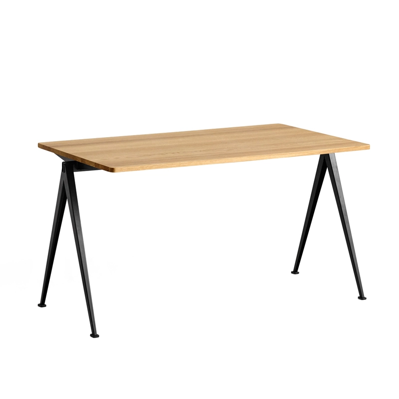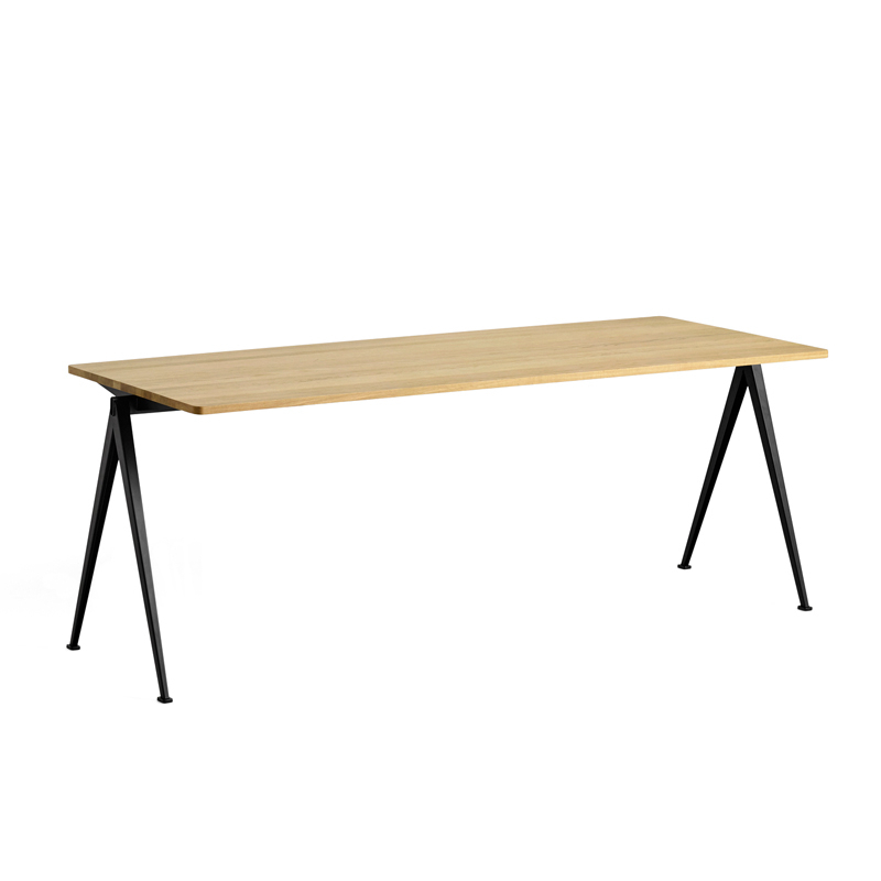 La série de tables Pyramid fait partie des collections relancées par Ahrend en collaboration avec la marque danoise Hay. Cette collection a été créée à l’origine par Friso Kramer et Wim Rietvield alors qu’ils travaillaient chez Ahrend dans les années 50. Considérées comme une création novatrice, les tables Pyramid résultent d’une utilisation innovante de la tôle d’acier sur un produit à la forme organique et contemporaine. Complété par une fine base en tôle d’acier, le plateau rectangulaire en chêne offre à la série Pyramid un caractère fonctionnel et épuré. Résultant d’une construction simple et d’une utilisation de matériaux durables et solides, les tables Pyramid 01 éditée par Hay sont également empilables ce qui les rendent appropriées pour une utilisation au sein d’établissement d’enseignement, d’espaces dédiés aux entreprises et aux particuliers.
