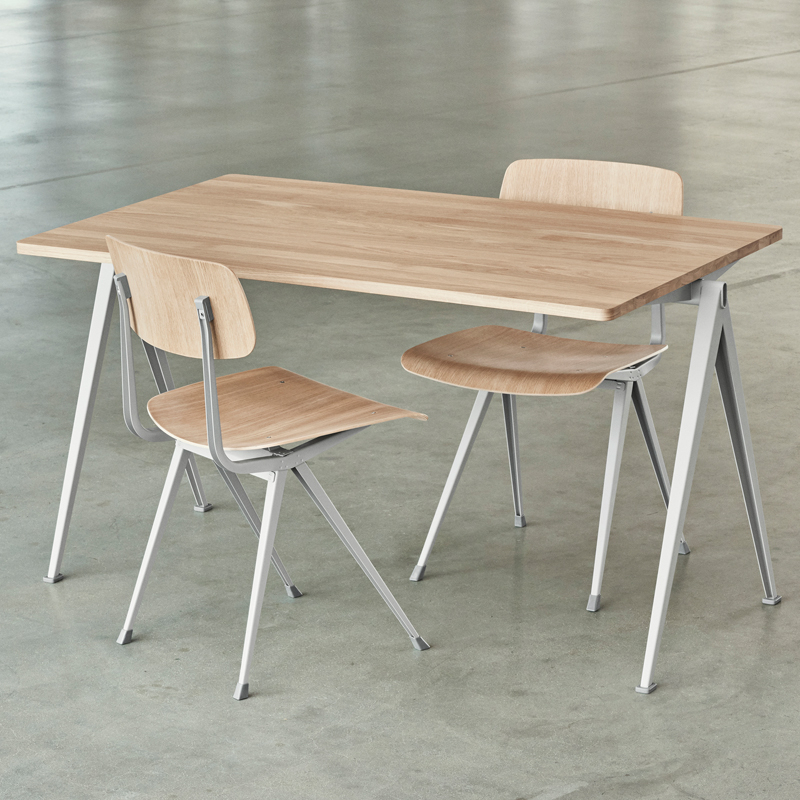 La série de tables Pyramid fait partie des collections relancées par Ahrend en collaboration avec la marque danoise Hay. Cette collection a été créée à l’origine par Friso Kramer et Wim Rietvield alors qu’ils travaillaient chez Ahrend dans les années 50. Considérées comme une création novatrice, les tables Pyramid résultent d’une utilisation innovante de la tôle d’acier sur un produit à la forme organique et contemporaine. Complété par une fine base en tôle d’acier, le plateau rectangulaire en chêne offre à la série Pyramid un caractère fonctionnel et épuré. Résultant d’une construction simple et d’une utilisation de matériaux durables et solides, les tables Pyramid 01 éditée par Hay sont également empilables ce qui les rendent appropriées pour une utilisation au sein d’établissement d’enseignement, d’espaces dédiés aux entreprises et aux particuliers.