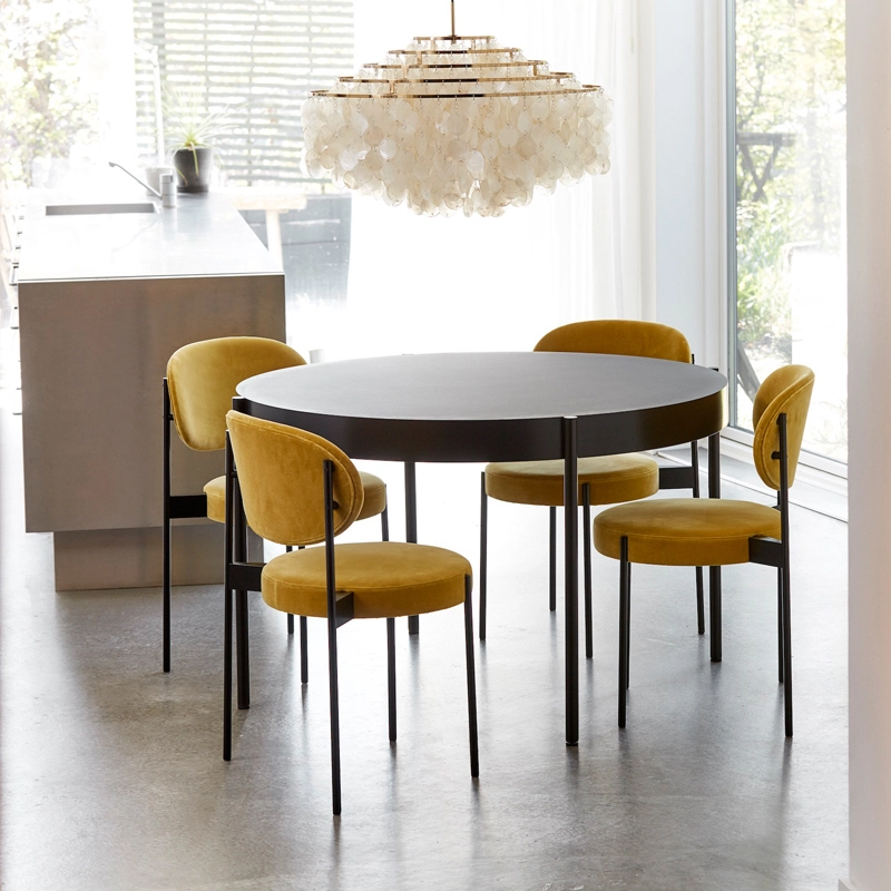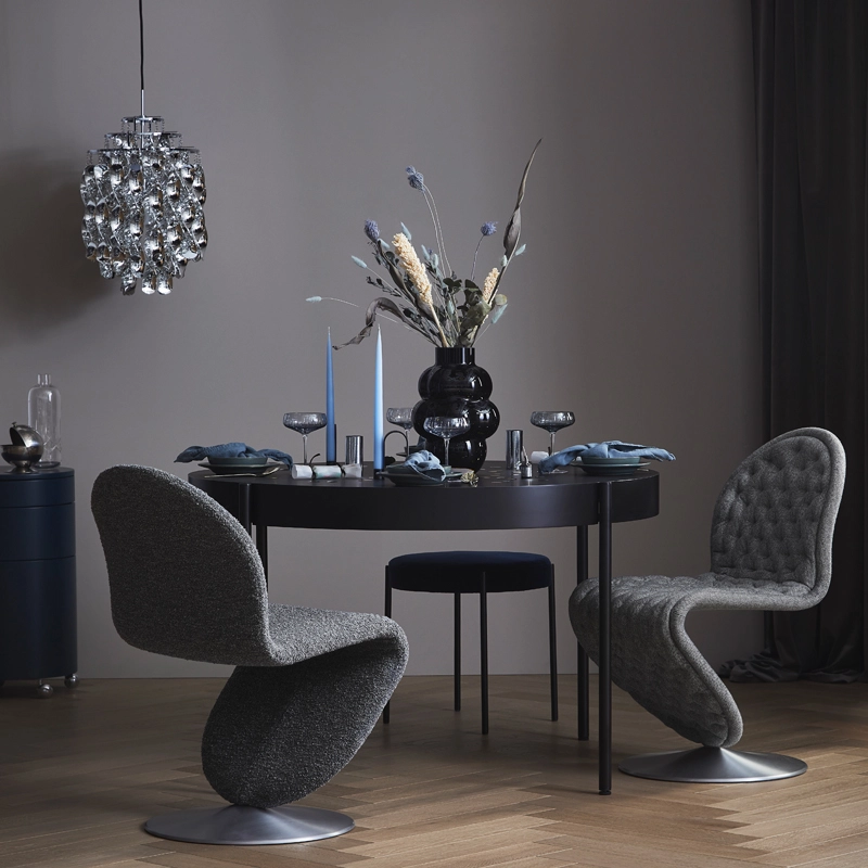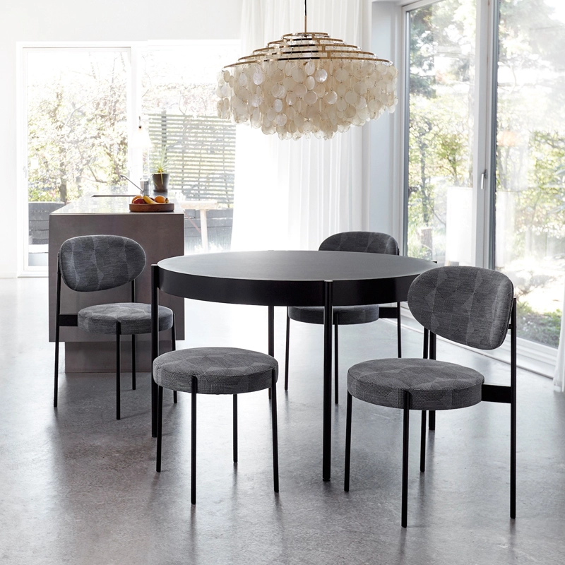 Avec Series 430, Verner Panton a conçu une table ronde qui met tout le monde au centre et maximise la convivialité. Créée en 1967 et toujours actuelle, elle est suffisamment légère pour que vous puissiez la déplacer selon vos besoins pour s'adapter à différentes utilisations : table de repas dans la salle à manger, une table pour jouer aux cartes dans le salon ou à une surface de travail supplémentaire dans la cuisine. Disponible en Fenix noir ou blanc et déclinée en deux diamètres, la table Series 430 trouve sa place dans tous les styles d'intérieurs, grâce à ses lignes épurées?