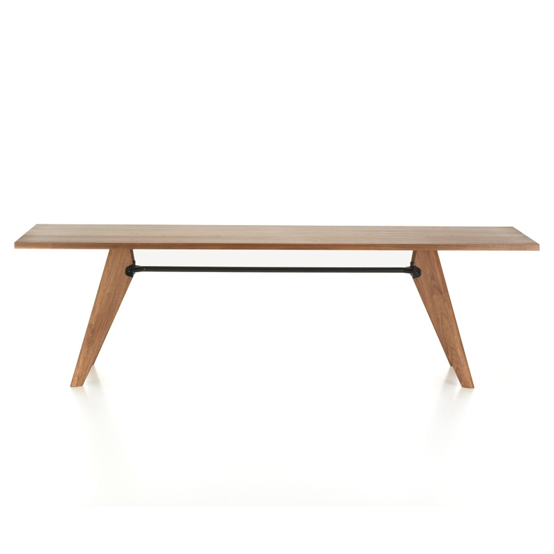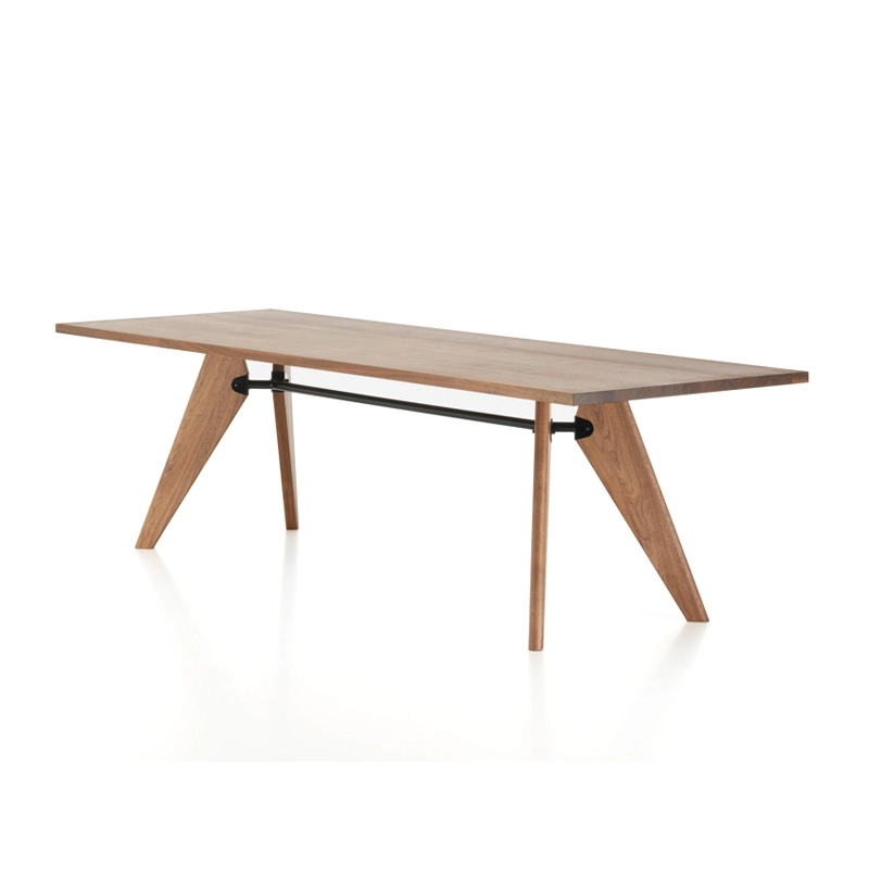 Pendant les années 1940, le studio du designer Jean Prouvé réalise de nombreux projets d'intérieurs pour la compagnie de produits chimiques Solvay. Parmi ces créations, une table en bois était particulièrement caractéristique du travail de l'architecte : tous les principes de construction sont clairement visibles dans les détails de cette table, similaire à la EM Table également éditée par Vitra, qui diffère de la table Solvay par ses pieds en métal. A l'époque, la réalisation de cette table réalisée était compliquée car le métal était une matière rare au sortir de la seconde guerre mondiale. C'est la raison pour laquelle les pieds sont réalisés en bois. Solvay est une table robuste et chaleureuse pour votre salle à manger.