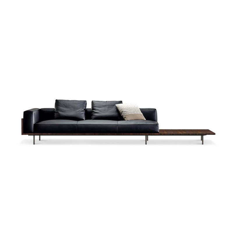Minotti a décliné en 4 dimensions (de 250 cm à une longueur de 400 cm) la table Superquadra, se déclinant dans des versions qui mettent en valeur ses qualités esthétiques et matérielles : bois de palissandre Santos teinté Dark Brown laqué polyester mat, frêne flammé laqué Noir à pores ouverts et palissandre Santos teinté Dark Brown assorti avec du marbre Sahara Noir laqué polyester mat.