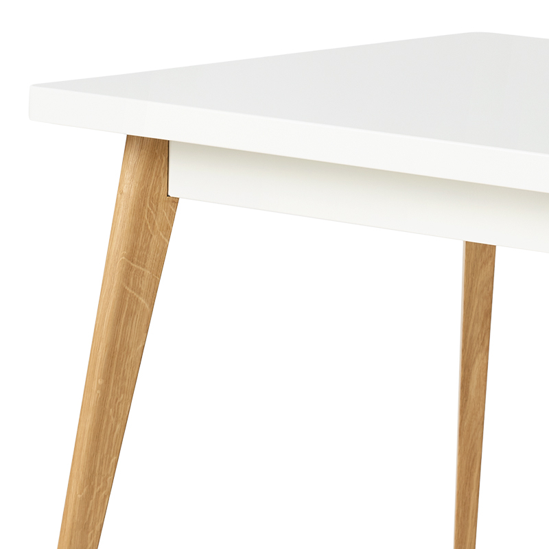 plateau acier laqué brillant ou brut verni, pieds coniques bois