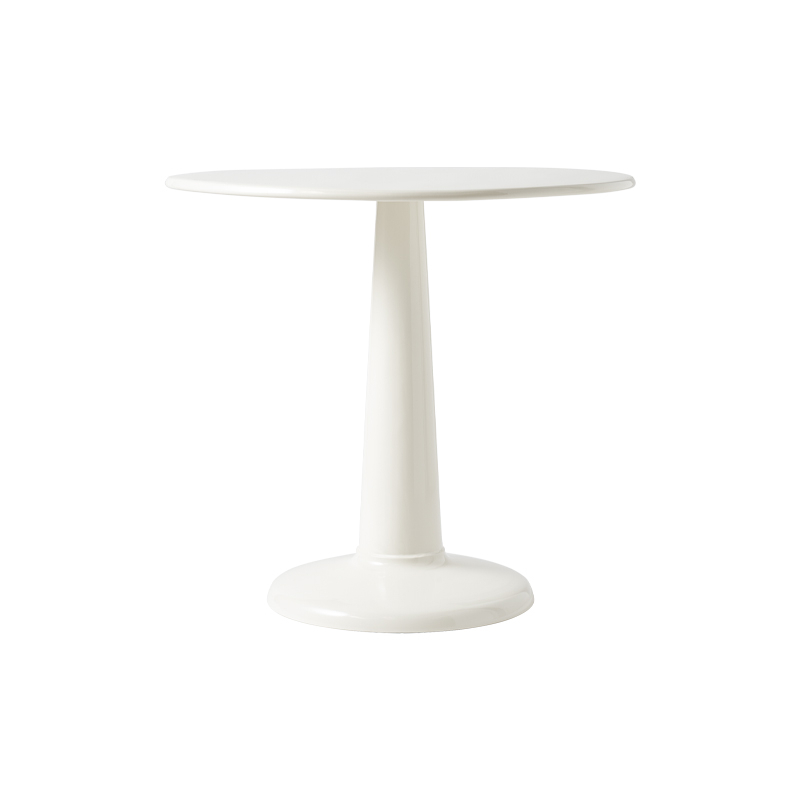 Le nom distinctif de cet objet est "G" comme guéridon. Cette table d'appoint guéridon G, est la première table éditée par la manufacture Tolix, fruit de la vision moderne de Xavier Pauchard. Fabriquée en tôle emboutie, elle se caractérise par sa forme entièrement ronde, avec un plateau circulaire reposant sur un unique pied conique. La table G est une icône du design, reconnaissable non seulement par son esthétique, mais aussi par l'histoire de sa création. En effet, la tôle est façonnée à l'aide d'un essieu de wagon récupéré à la gare d'Autun, lui permettant ainsi de prendre une forme courbée. Cette même méthode est utilisée par les artisans de la manufacture Tolix pour réaliser chaque exemplaire à la main. Dotée d'un plateau de 80 centimètres de diamètre, la table G est idéale pour accueillir jusqu'à 4 convives. Les finitions brillantes de cette table révèlent la précision et le soin apportés à sa fabrication, ajoutant une touche de raffinement à son allure intemporelle.