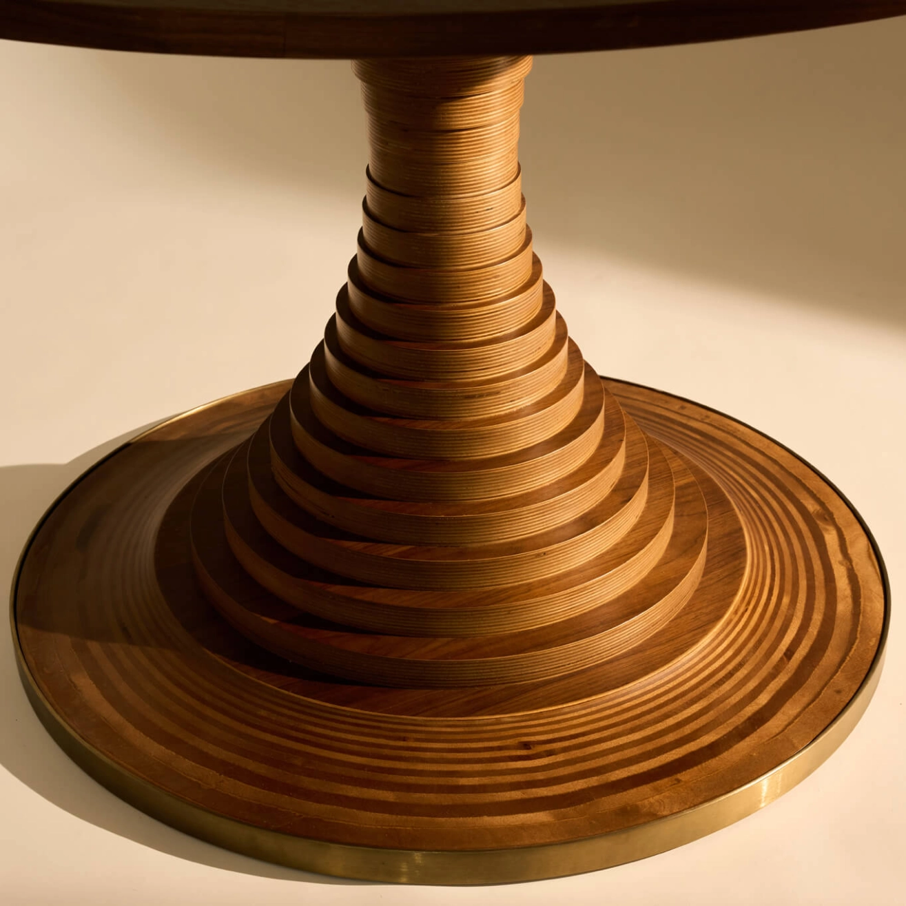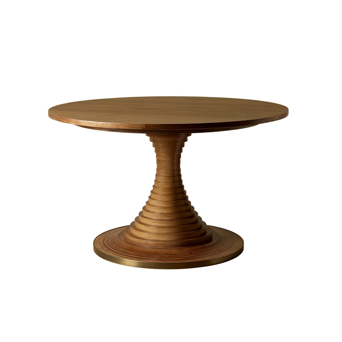 Conçue en 1963 par l’influent architecte italien Carlo De Carli, la Tavolo a Dischi est un mariage élégant de fonction et de forme, alliant innovation structurelle, matérialité expressive et excellence pratique. Ce design intemporel reflète une approche visionnaire, où chaque élément est pensé à la fois pour sa beauté et son efficacité. La table ronde est ingénieusement construite à partir de disques de contreplaqué de bouleau certifiés FSC® Mix, d’une épaisseur de 3 cm et de diamètres variés, provenant d’autres sources responsables (FSC® C176589), empilés autour d’un noyau métallique dissimulé, pour former une courbe élégante qui soutient un plateau généreux en placage de noyer, maintenant disponible en deux tailles. Cette composition structurelle soignée confère à la table une présence sculpturale tout en garantissant stabilité et robustesse au quotidien. Une bande d’acier bruni dans la teinte laiton à la base ajoute un contraste de matériau tout en offrant une protection. Ce détail métallique vient subtilement souligner la silhouette de la table, créant un équilibre harmonieux entre textures et finitions. Tout aussi adaptée aux repas, réunions ou rassemblements, la Tavolo a Dischi est une pièce maîtresse qui rassemble les gens, favorisant la connexion et la conversation. Elle s’impose naturellement comme un lieu de rencontre, propice aux échanges et aux instants partagés.