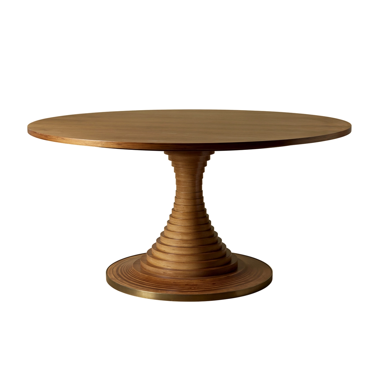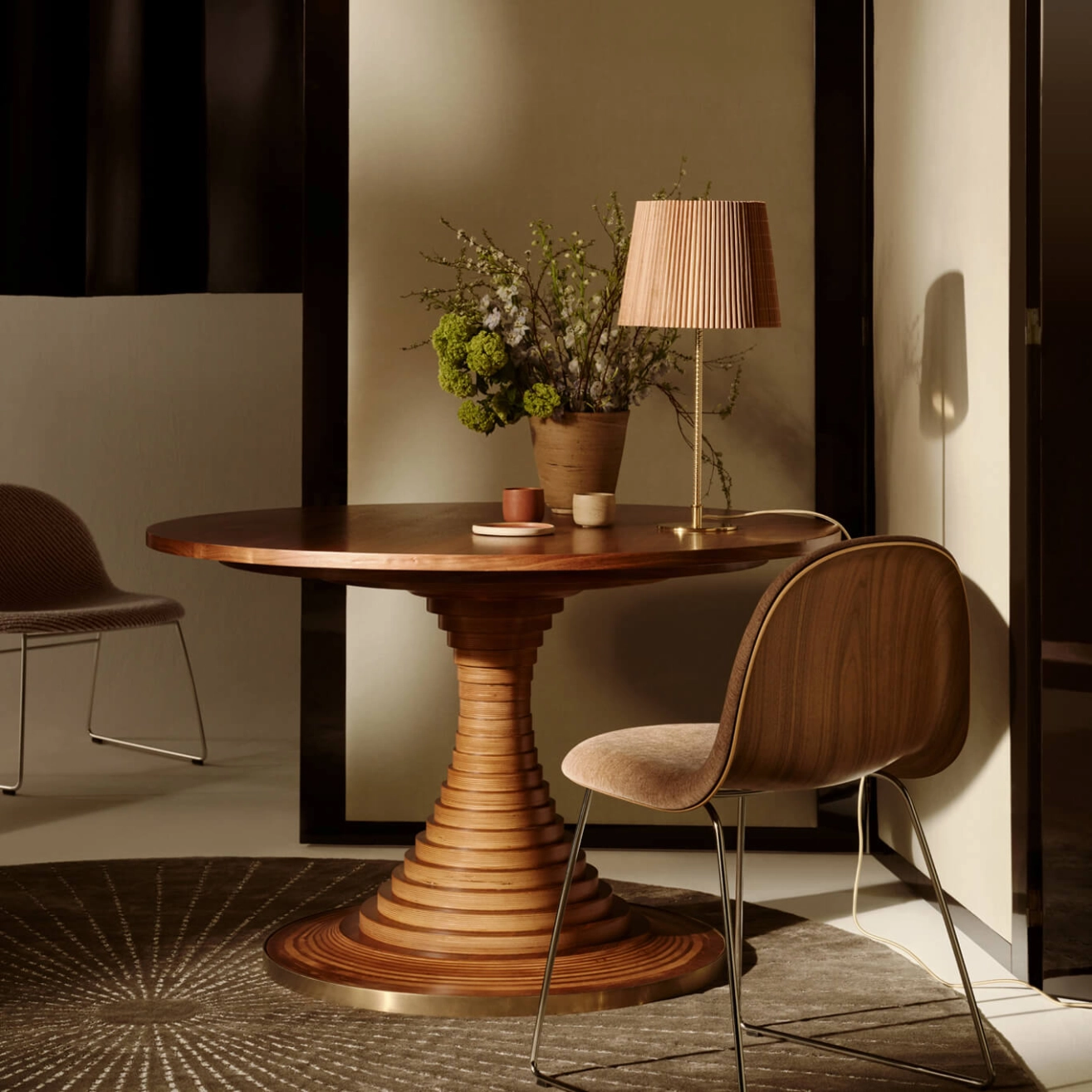 Conçue en 1963 par l’influent architecte italien Carlo De Carli, la Tavolo a Dischi est un mariage élégant de fonction et de forme, alliant innovation structurelle, matérialité expressive et excellence pratique. Ce design intemporel reflète une approche visionnaire, où chaque élément est pensé à la fois pour sa beauté et son efficacité. La table ronde est ingénieusement construite à partir de disques de contreplaqué de bouleau certifiés FSC® Mix, d’une épaisseur de 3 cm et de diamètres variés, provenant d’autres sources responsables (FSC® C176589), empilés autour d’un noyau métallique dissimulé, pour former une courbe élégante qui soutient un plateau généreux en placage de noyer, maintenant disponible en deux tailles. Cette composition structurelle soignée confère à la table une présence sculpturale tout en garantissant stabilité et robustesse au quotidien. Une bande d’acier bruni dans la teinte laiton à la base ajoute un contraste de matériau tout en offrant une protection. Ce détail métallique vient subtilement souligner la silhouette de la table, créant un équilibre harmonieux entre textures et finitions. Tout aussi adaptée aux repas, réunions ou rassemblements, la Tavolo a Dischi est une pièce maîtresse qui rassemble les gens, favorisant la connexion et la conversation. Elle s’impose naturellement comme un lieu de rencontre, propice aux échanges et aux instants partagés.