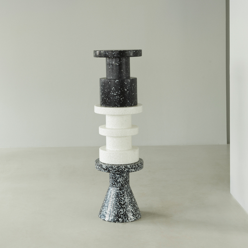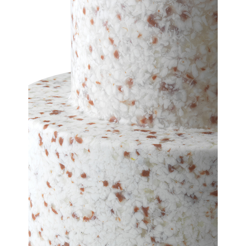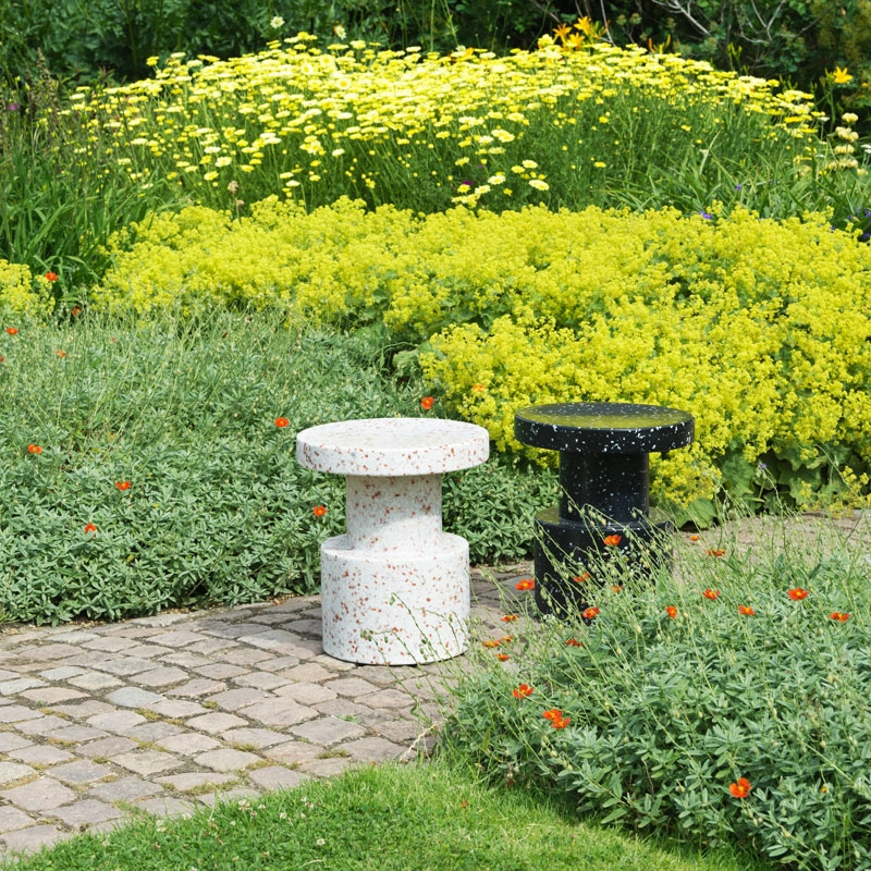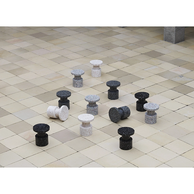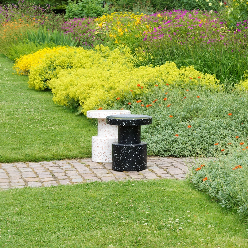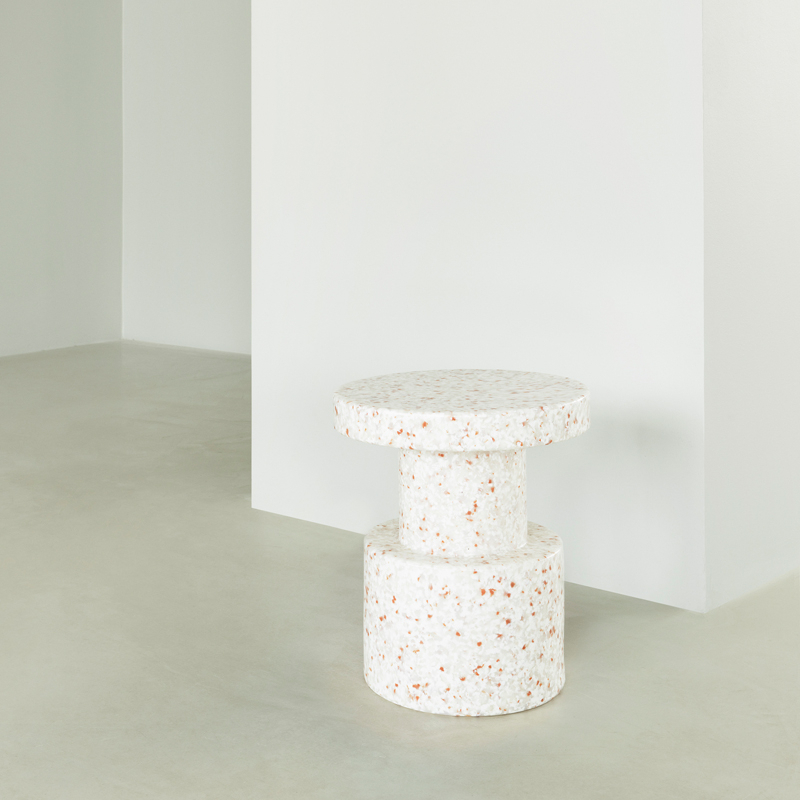 Bit est un meuble pluriel et sculptural qui peut avoir de multiples fonctions dans un intérieur. Vous pouvez par exemple utiliser Bit comme piédestal pour une belle décoration florale, comme table d’appoint pour y poser une lampe ou comme tabouret pour un convive supplémentaire. Pour concevoir le multifonctionnel Bit, le designer Simon Legald s’est inspiré de formes immuables comme les monolithes et les piliers. La rigueur de sa forme est brisée par sa surface caractéristique et pixélisée grâce aux petits morceaux de 100% plastique recyclé d’origine industrielle et ménagère. Une méthode particulière où les fragments de plastique sont chauffés jusqu’à leur point de fusion à 120 degrés, et qui permet de recycler et de refusionner la matière un grand nombre de fois sans modifier ses propriétés. Il en résulte une profondeur et une composition singulières rendant chaque table Bit unique. Bit est disponible en quatre jolis coloris. Alors que la production et la matière sont mises en évidence par l’aspect multicolore et gris chiné, la table noire et blanche s’intègre humblement dans un intérieur existant. Avec sa forme subtile et son jeu de couleur accrocheur, Bit donne de la personnalité à toute décoration intérieure. Le tabouret Bit résiste aux températures allant de - 10 à 50 °C et trouvera sa place à l’intérieur comme à l’extérieur.