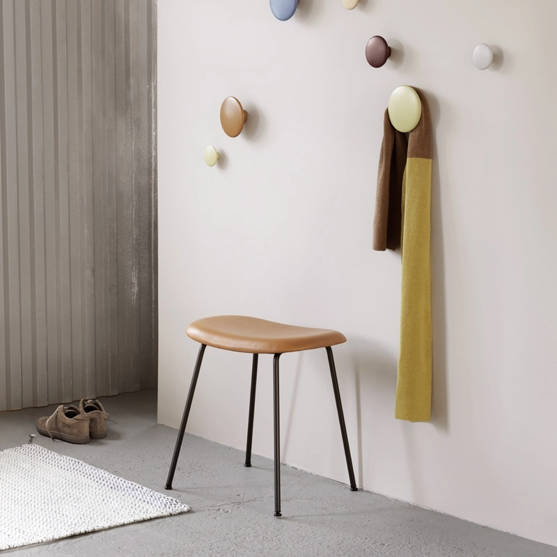 Tabouret FIBER STOOL pieds acier siège cuir Cognac MUUTO
