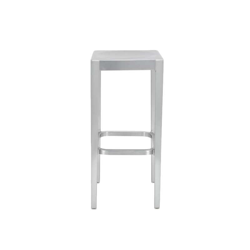 Emeco de fabriquer un tabouret "simple" pour la rétrospective Mies Van der Rohe à Berlin. Le résultat est un tabouret Best-seller, robuste et léger. L’assise, constituée d’un cercle incurvé au centre d’un plan carré en fait un siège à la fois pratique et sophistiqué. Ce tabouret en aluminium recyclé et brossé, est compatible avec un usage à l’extérieur. Le