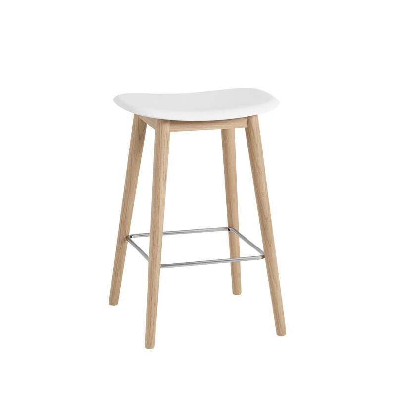 Tabouret haut FIBER BAR STOOL pieds bois H65 Blanc/ chêne MUUTO