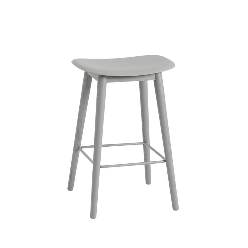 Tabouret haut FIBER BAR STOOL pieds bois H65 Gris MUUTO