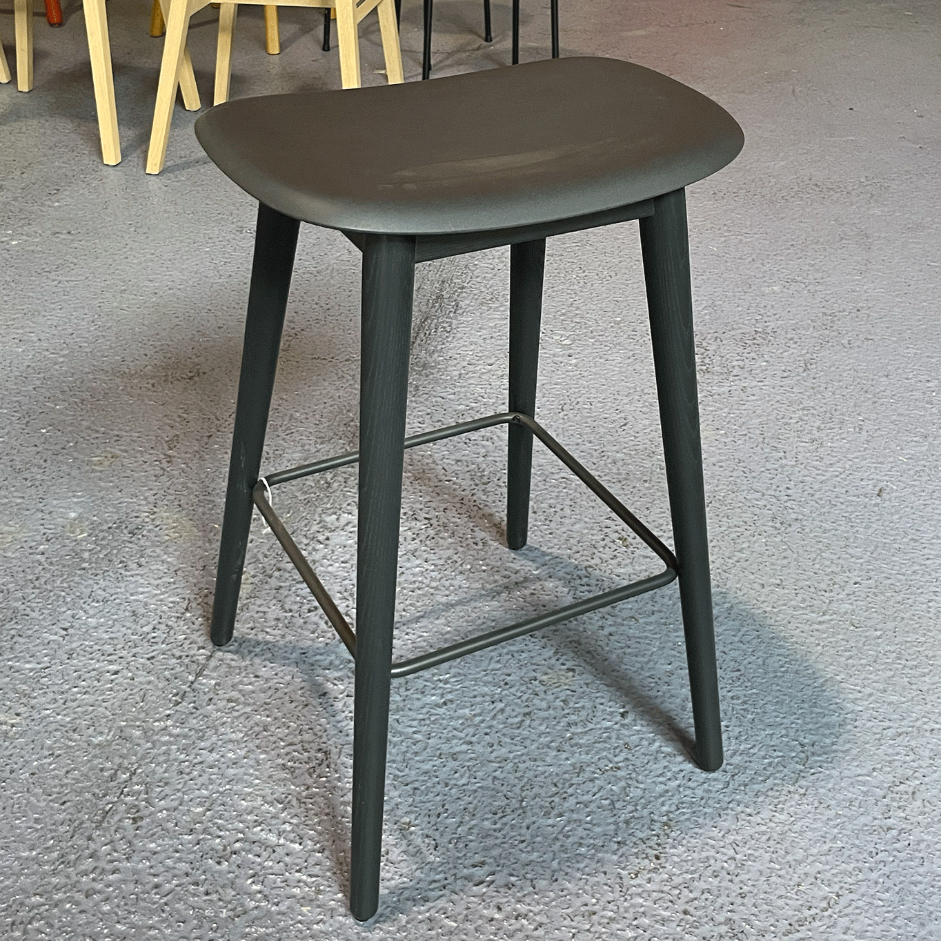 Fiber est une collection de sièges, dessinée par le studio danois Iskos-Berlin pour Muuto. Cette collection se distingue par une coque d'assise innovante composée de fibre de bois et de plastique recyclé. D'apparence lisse, la coque révèle cependant les morceaux de fibre de bois lorsque l'on regarde de plus près, ce qui lui donne cette particularité. Les designers ont étudié chaque ligne et chaque courbe pour créer une chaise d'un grand confort et d'un encombrement minimum. Le tabouret haut d'occasion Fiber est disponible en plusieurs couleurs avec un piètement métal ou bois pour s'intégrer dans tous les styles d'intérieur.