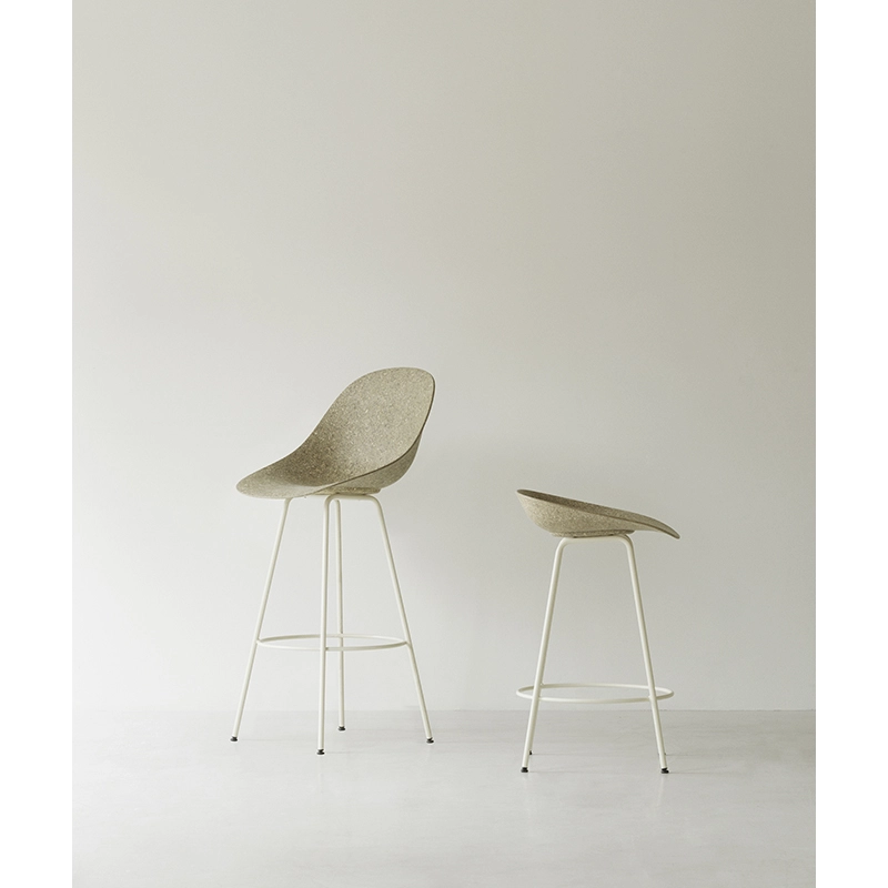 Ainsi, Mat de Normann Copenhagen est un tabouret haut minimaliste, mais doté d’une approche inédite en matière de matériaux. Confortable et ergonomique, la collection comprend de nombreux modèles de chaises de salle à manger et de tabourets de bar, disponibles avec ou sans capitonnage. Exploitant les propriétés naturelles de cette plante, la coque est principalement réalisée en fibres de chanvre, scellées par un liant entièrement recyclable. Le tabouret haut Mat se décline également en une version emblématique incorporant de la zostère, une autre ressource naturelle dotée de nombreuses excellentes qualités et d’une esthétique distinctive. Les coques sont montées sur un piètement simplissime en acier thermolaqué, disponible en deux coloris.
