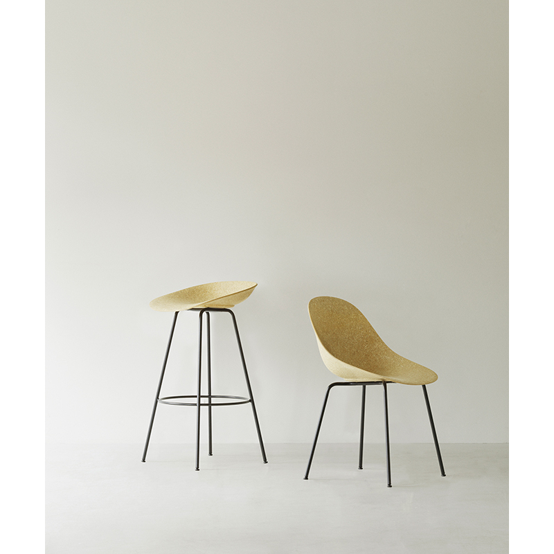Ainsi, Mat de Normann Copenhagen est un tabouret haut minimaliste, mais doté d’une approche inédite en matière de matériaux. Confortable et ergonomique, la collection comprend de nombreux modèles de chaises de salle à manger et de tabourets de bar, disponibles avec ou sans capitonnage. Exploitant les propriétés naturelles de cette plante, la coque est principalement réalisée en fibres de chanvre, scellées par un liant entièrement recyclable. Le tabouret haut Mat se décline également en une version emblématique incorporant de la zostère, une autre ressource naturelle dotée de nombreuses excellentes qualités et d’une esthétique distinctive. Les coques sont montées sur un piètement simplissime en acier thermolaqué, disponible en deux coloris.