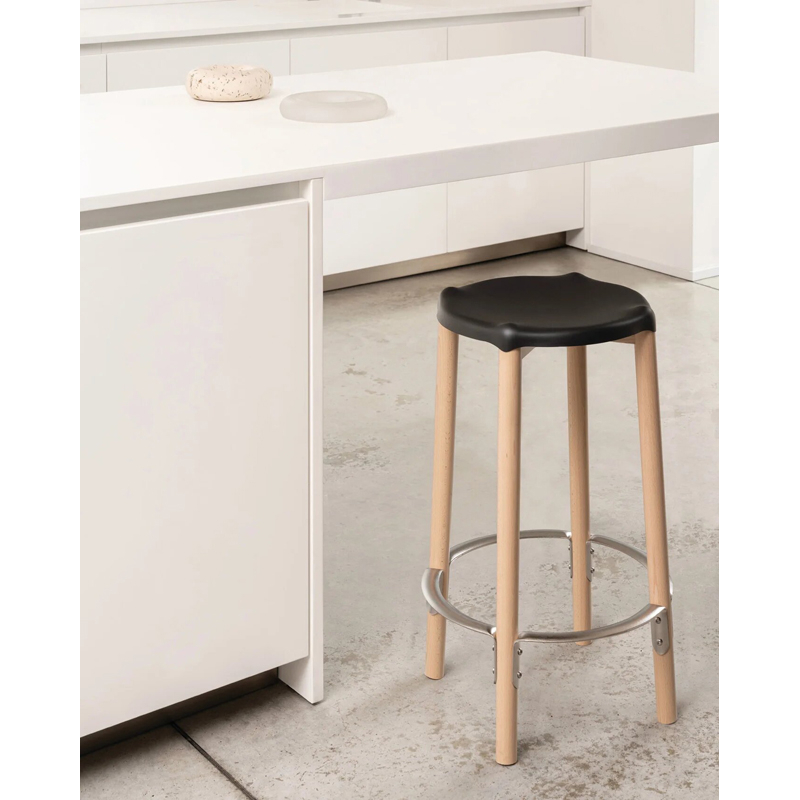 Créé par Philippe Starck et édité par Alessi, le tabouret haut Poêle présente une assise agréable et organique mais également une structure en bois avec un design léger et simple. Il promet un confort et une stabilité grâce à sa coque en acier. Le tabouret haut Poêle d’Alessi est idéal pour compléter vos ilots de cuisine et peut aussi trouver sa place dans un bar lounge ou dans des espaces tel que l’hôtellerie ou la restauration. Ainsi, le tabouret haut Poêle est parfait et pratique pour tous types d'espaces, priés ou publics.