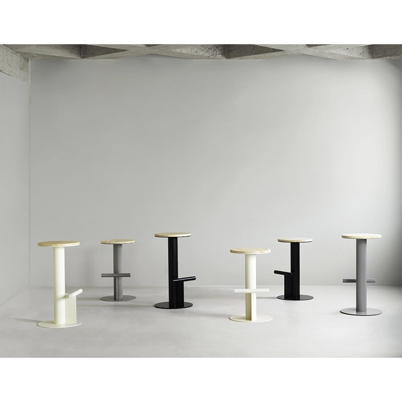 Imaginé par le designer Simon Legald pour Normann Copenhagen, Pole est un tabouret haut épuré, où l'accent est mis sur des matériaux durables et de haute qualité. La base du tabouret haut Pole Barstool est constituée d'un tube en acier peint par poudrage et d’un repose-pied en tube plus petit, tandis que l'assise circulaire est fabriquée en pin massif. Le tabouret Pole Barstool est disponible en deux hauteurs différentes, 65 cm ou 75 cm, et en trois couleurs différentes. Le design du tabouret haut Pole de Normann Copenhagen s'inspire de l'architecture brutaliste qui, avec ses matériaux robustes et ses formes géométriques, constitue le fondement de la structure de Pole. Le tabouret de bar Pole se présente comme une assise dont le design est simple mais plein de caractère, avec des éléments géométriques contrastés et des détails subtils mais fonctionnels.
