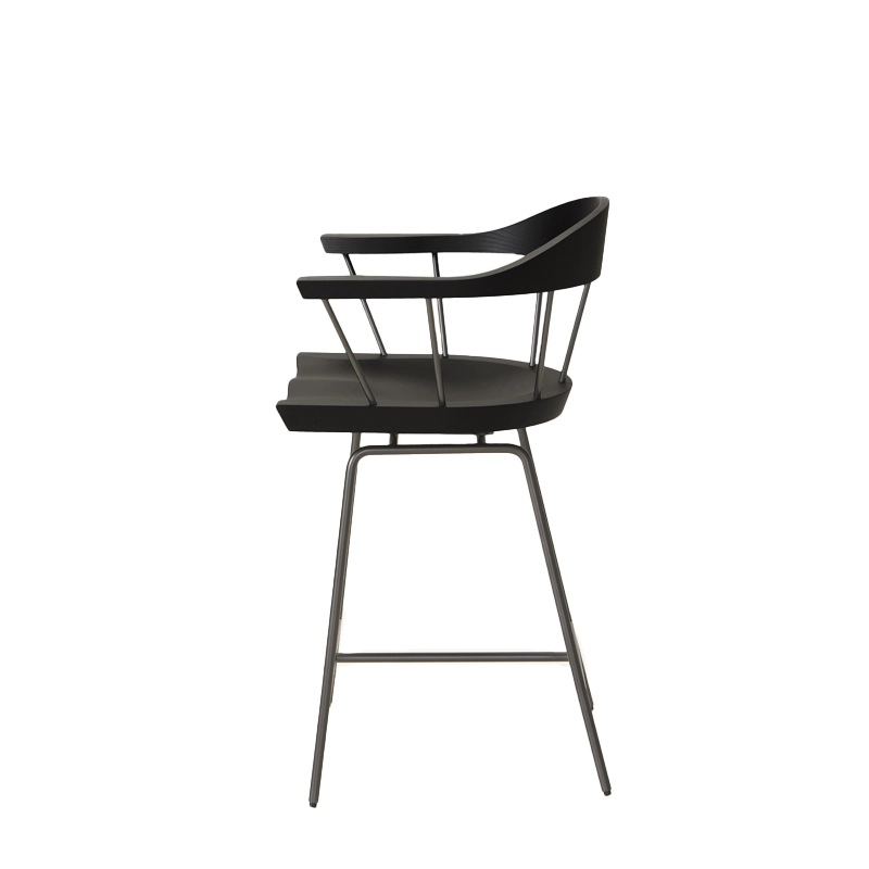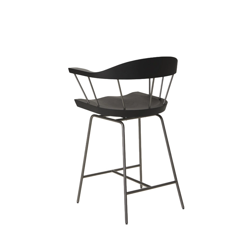 Le tabouret haut Spindle créé par Craig Bassam pour Bassam Fellows s’inspire de la chaise anglaise Windsor créée au XVIIIe siècle. Cette collection de sièges incarne parfaitement le contraste entre l’ancien et le nouveau. Le tabouret haut Spindle possède une silhouette fine avec des pieds et des tiges en métal aussi minces que possible. Les différents éléments ergonomiques sont en bois sculpté, donnant l’impression qu’ils sont en apesanteur, grâce à leurs supports fins. Le tabouret haut Spindle de Bassam Fellows est disponible en version comptoir ou bar et se décline en plusieurs finitions. Chaque tabouret Spindle est conçu avec un système pivotant avec retour pour une facilité d'utilisation et une apparence soignée, ce qui en fait également une solution très pratique pour les environnements d'accueil.