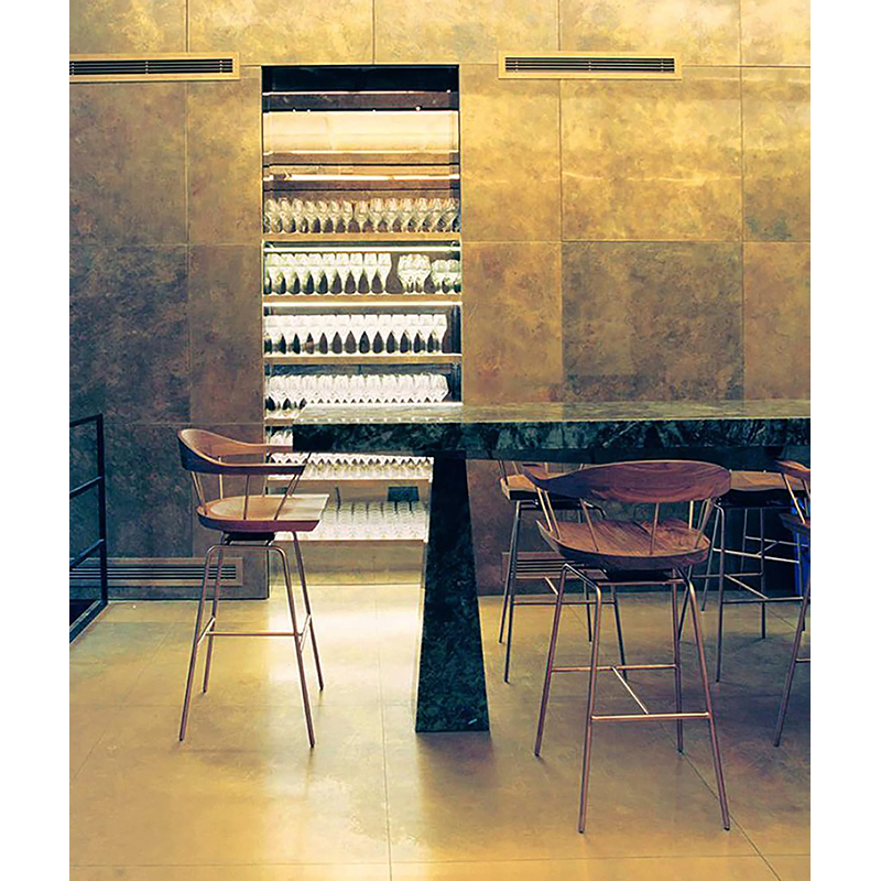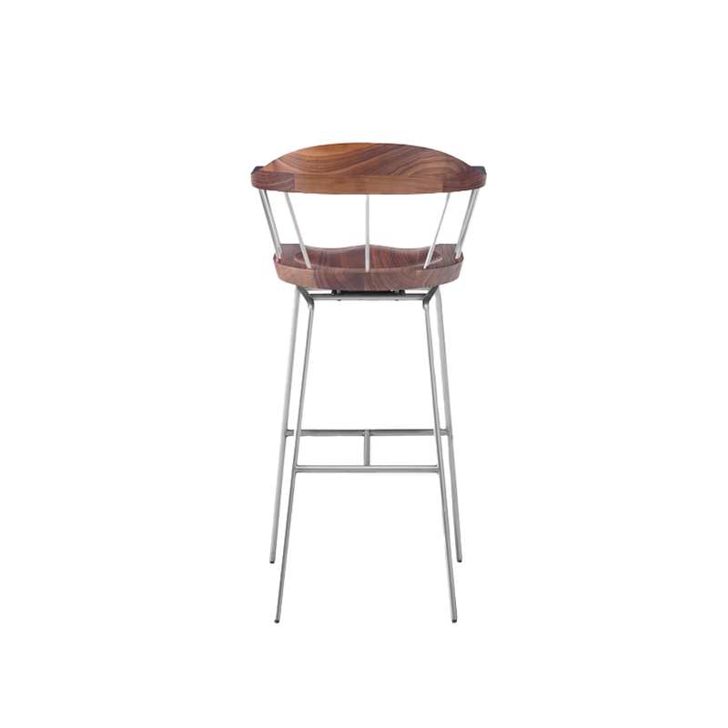 Le tabouret haut Spindle créé par Craig Bassam pour Bassam Fellows s’inspire de la chaise anglaise Windsor créée au XVIIIe siècle. Cette collection de sièges incarne parfaitement le contraste entre l’ancien et le nouveau. Le tabouret haut Spindle possède une silhouette fine avec des pieds et des tiges en métal aussi minces que possible. Les différents éléments ergonomiques sont en bois sculpté, donnant l’impression qu’ils sont en apesanteur, grâce à leurs supports fins. Le tabouret haut Spindle de Bassam Fellows est disponible en version comptoir ou bar et se décline en plusieurs finitions. Chaque tabouret Spindle est conçu avec un système pivotant avec retour pour une facilité d'utilisation et une apparence soignée, ce qui en fait également une solution très pratique pour les environnements d'accueil.