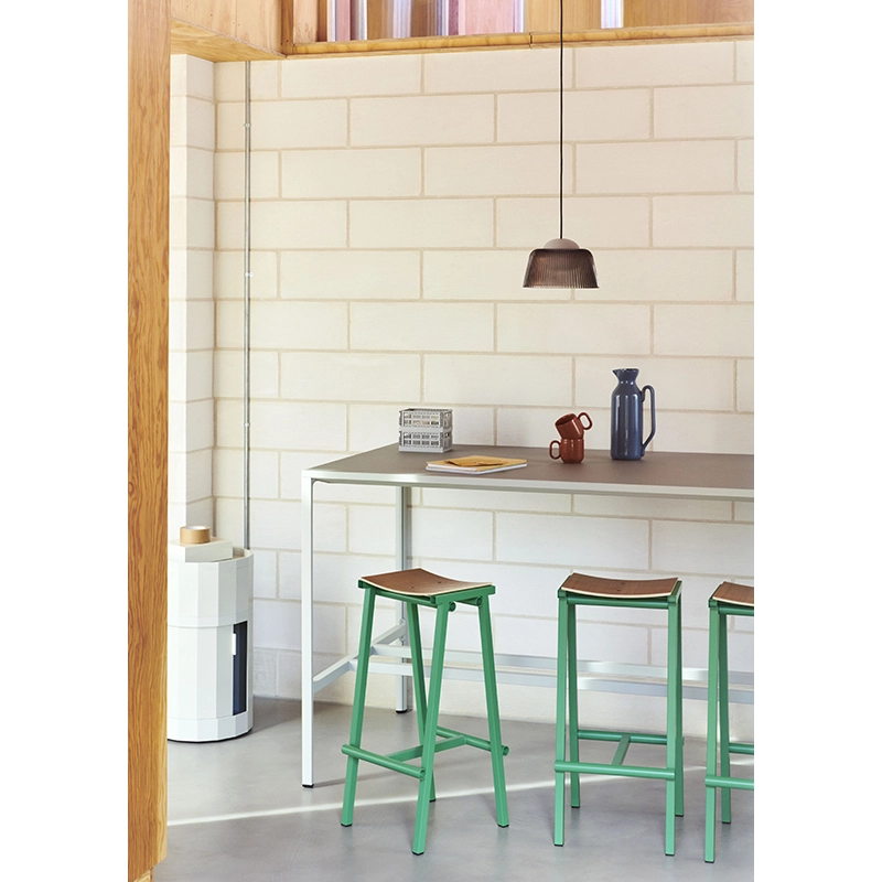 Conçu par Marc Morro Studio et édité par Hay, le tabouret haut de bar Taburete 8 H 66 marque le début d'une collaboration passionnante avec le designer espagnol. Nommé "8" en référence aux huit prototypes nécessaires pour atteindre la version finale, ce tabouret incarne une esthétique honnête et radicale propre à l'approche directe de Morro en matière de design. Disponible en deux hauteurs (66 cm et 76 cm), le Taburete 8 H 66 combine une assise courbée en contreplaqué et un cadre en tubes d'acier. Les différents composants sont mis en valeur par leur simplicité brute et un usage audacieux de la couleur. Sa construction robuste et son expression minimaliste en font un meuble polyvalent, facile à intégrer dans une grande variété d'environnements, que ce soit dans des bars, des restaurants ou des espaces privés.