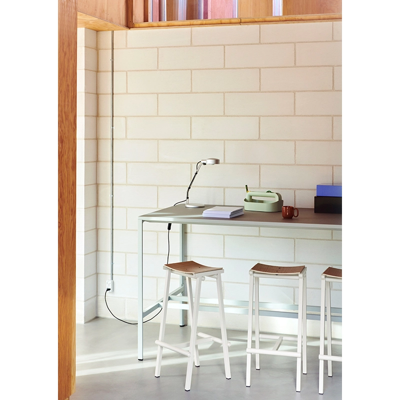 Conçu par Marc Morro Studio et édité par Hay, le tabouret haut de bar Taburete 8 H 76 marque le début d'une collaboration passionnante avec le designer espagnol. Nommé "8" en référence aux huit prototypes nécessaires pour atteindre la version finale, ce tabouret incarne une esthétique honnête et radicale propre à l'approche directe de Morro en matière de design. Disponible en deux hauteurs (66 cm et 76 cm), le Taburete 8 H 76 combine une assise courbée en contreplaqué et un cadre en tubes d'acier. Les différents composants sont mis en valeur par leur simplicité brute et un usage audacieux de la couleur. Sa construction robuste et son expression minimaliste en font un meuble polyvalent, facile à intégrer dans une grande variété d'environnements, que ce soit dans des bars, des restaurants ou des espaces privés.