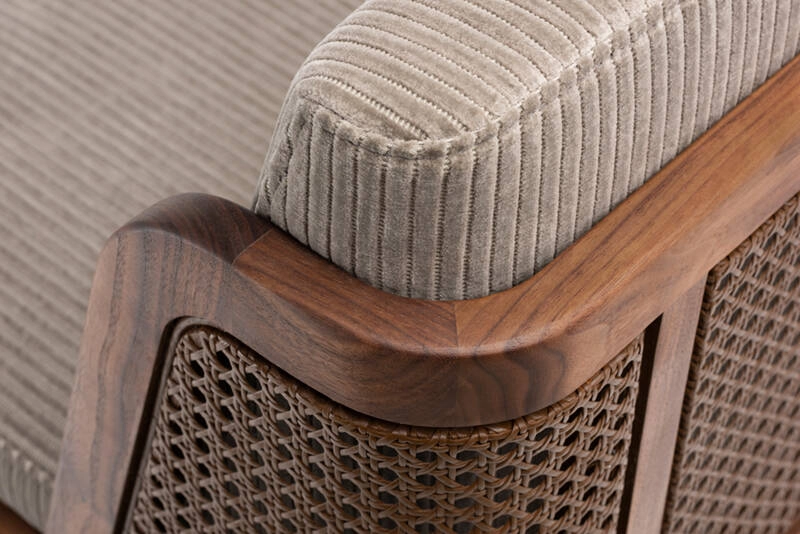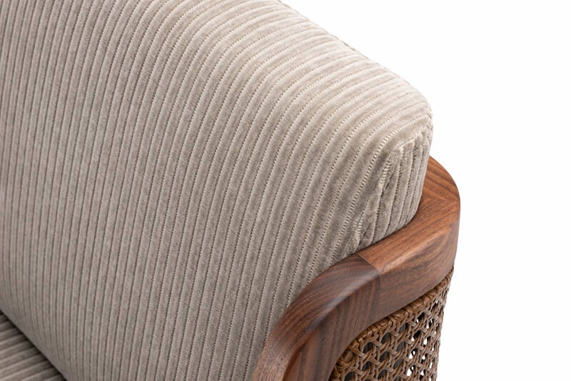 noyer huilé, revêtement assise et dossier tissu