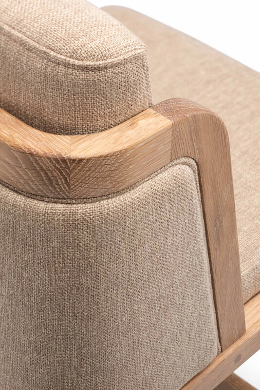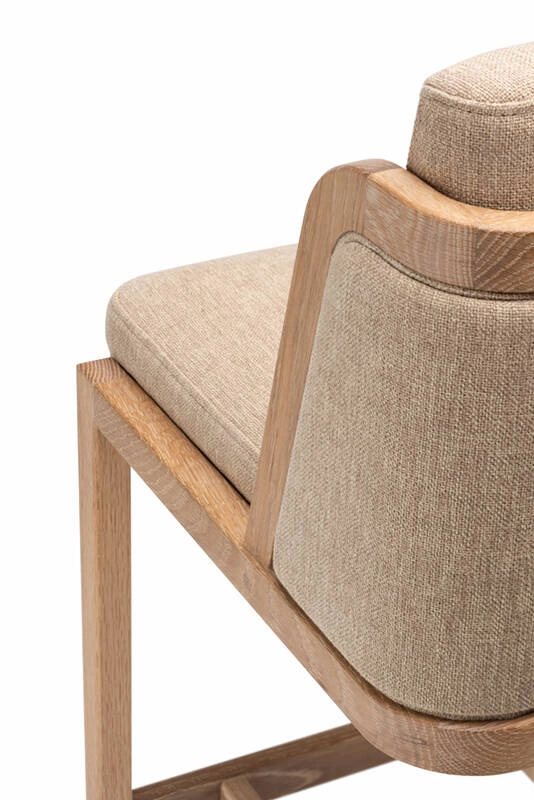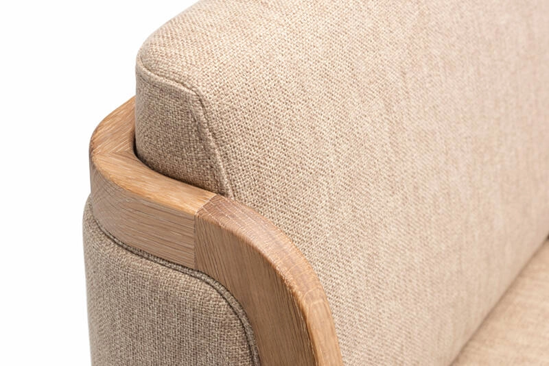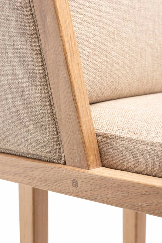 noyer huilé, chêne blanc huilé, revêtement assise et dossier tissu