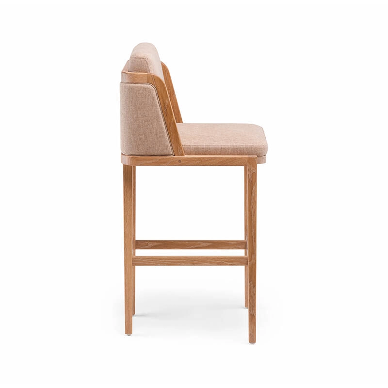 Tabouret haut THRONE dossier tissu Chêne huilé blanc / Clay 010 DE LA ESPADA