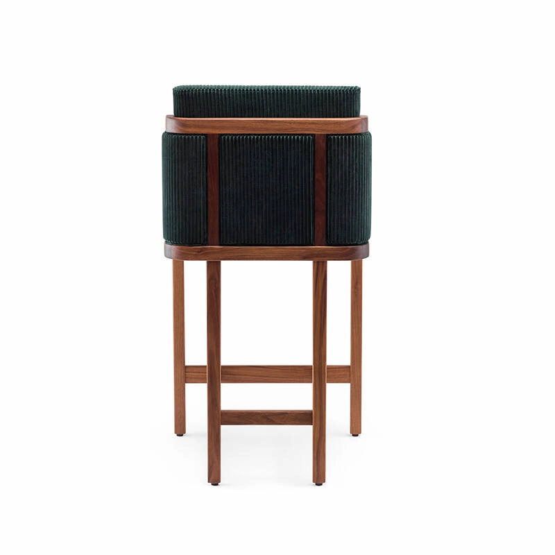 Le tabouret de bar Throne de De La Espada marie tradition et modernité, rappelant les influences Art déco d'Autoban. Throne fait partie d'une famille de meubles qui comprend une chaise de salle à manger, une chaise longue et un canapé, disponible avec un dossier en rotin ou rembourré.