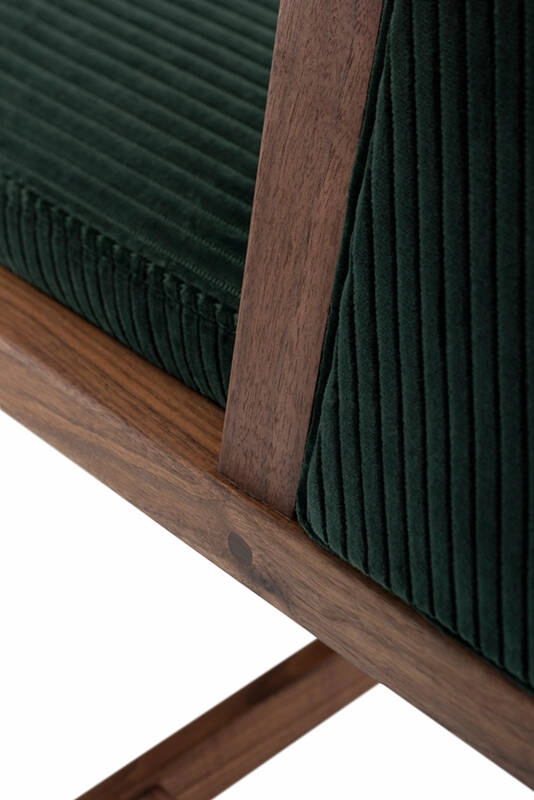 noyer huilé, chêne blanc huilé, revêtement assise et dossier tissu