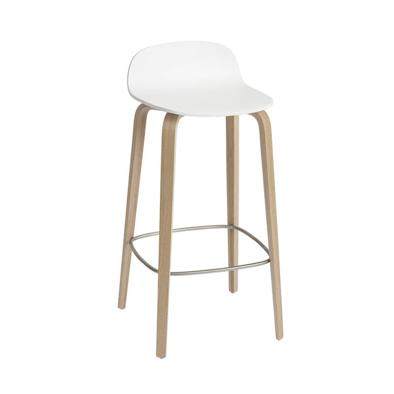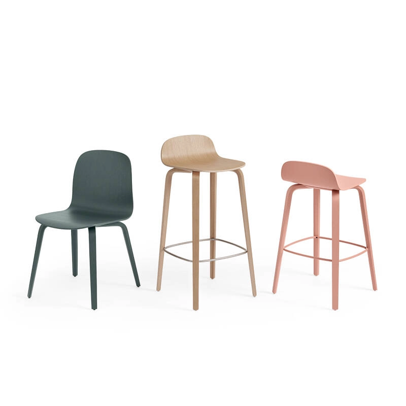 Visu est une collection de sièges dessinée par Mika Tolvanen pour Muuto. Après les paniers Restore, le designer réinterprète la traditionnelle chaise en contreplaqué moulé. Il crée ainsi une famille d'assises modernes pour différents usages : une chaise avec un piètement luge ou avec des pieds bois, une chauffeuse et un tabouret de bar. Ces sièges sont disponibles dans plusieurs couleurs de bois ou recouverts de tissu. Chacun peut ainsi trouver le fauteuil qui lui correspond ou créer des mélanges de couleurs de chaises à placer autour de la table de la salle à manger. La chauffeuse prend peu de place et s'accorde facilement avec tous les styles de meubles dans le salon.