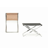 Le tabouret pliant PK91, dessiné par Poul Kjærholm en 1961, s'inspire des tabourets pliants de l'Egypte ancienne. La démarche du designer consiste à redéfinir et simplifier du mobilier historique. C'est ce qu'il fait avec PK91, avec pour résultat un tabouret minimaliste et élégant édité par Fritz Hansen. Il fait partie de la collection permanente du Röhsska Museum en Suède. La base en acier inoxydable satiné est asociée à une assise en cuir noir ou en toile.